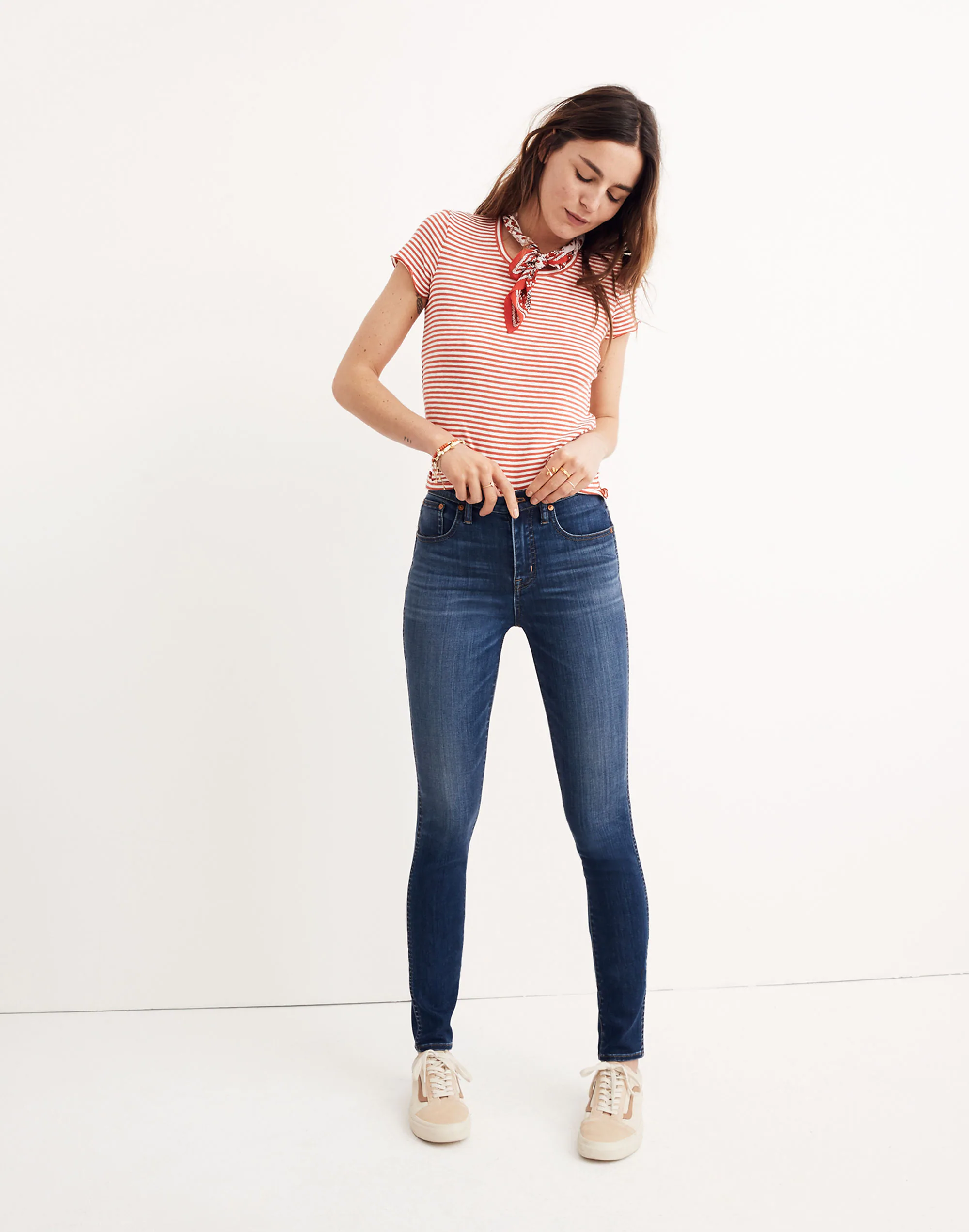 Made of soft-to-the-touch denim woven with TENCEL™ lyocell, these 10″ high-rise skinny jeans feel like stealth yoga pants.