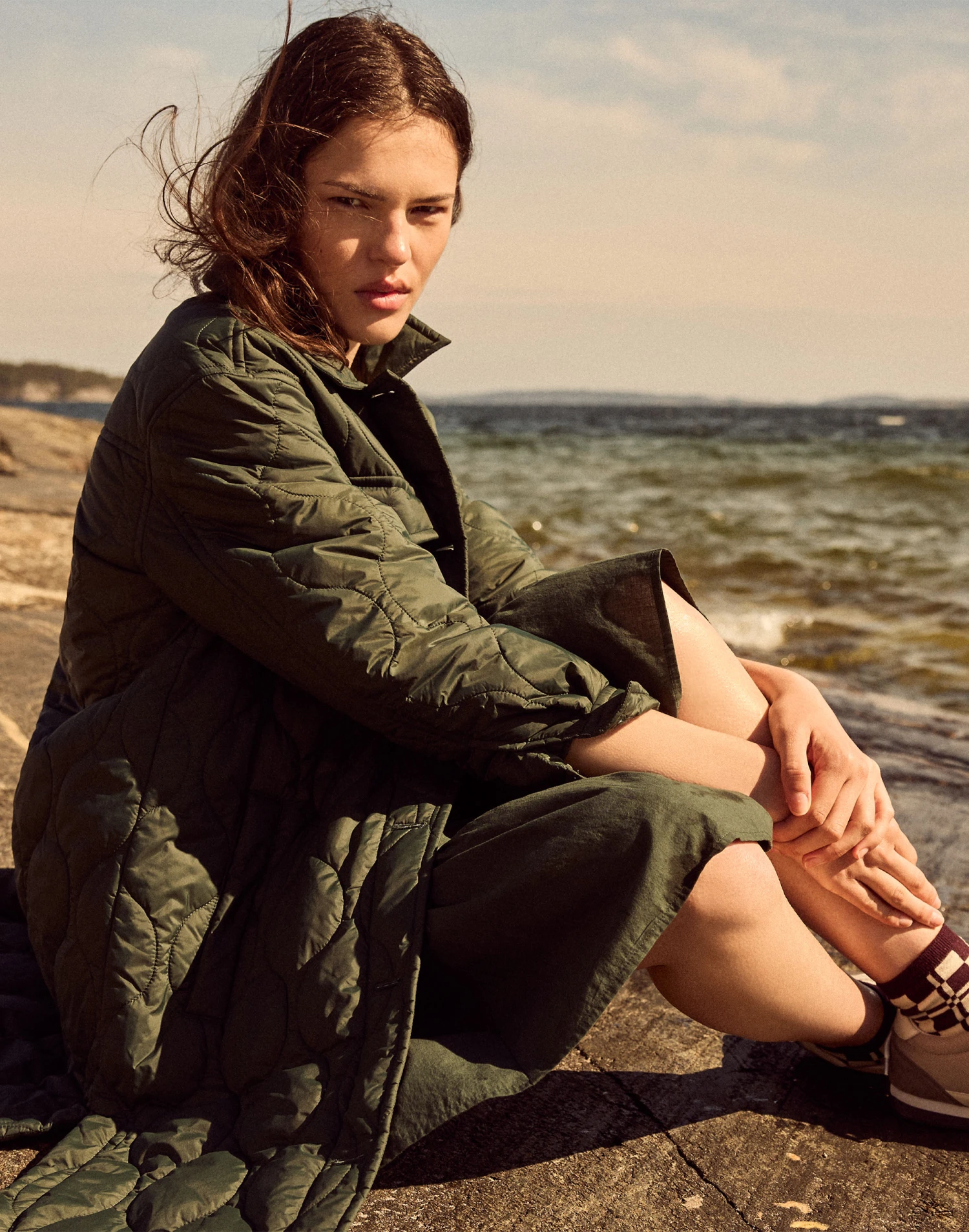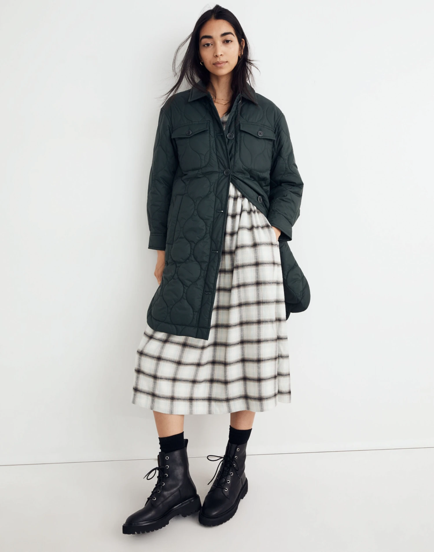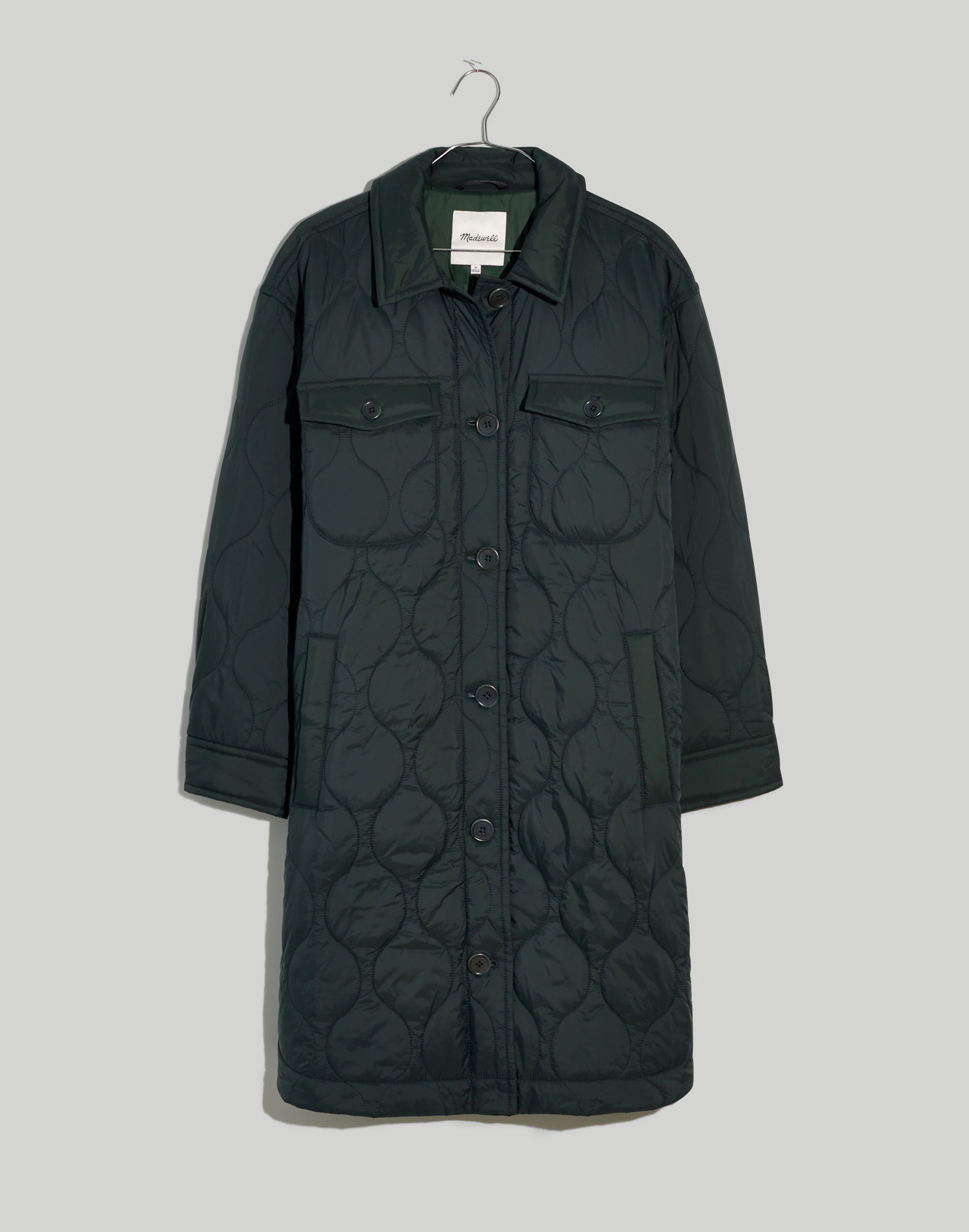Crafted in our lightweight (Re)sourced recycled nylon, this travel-friendly long oversized shacket squishes up small to make packing a breeze. Supercozy with slouchy drop shoulders and hand-warming welt pockets, it’s filled with PrimaLoft® insulation, a warm-as-down alternative made of 100 percent recycled content (aka we’re keeping plastic bottles out of landfills with this one).