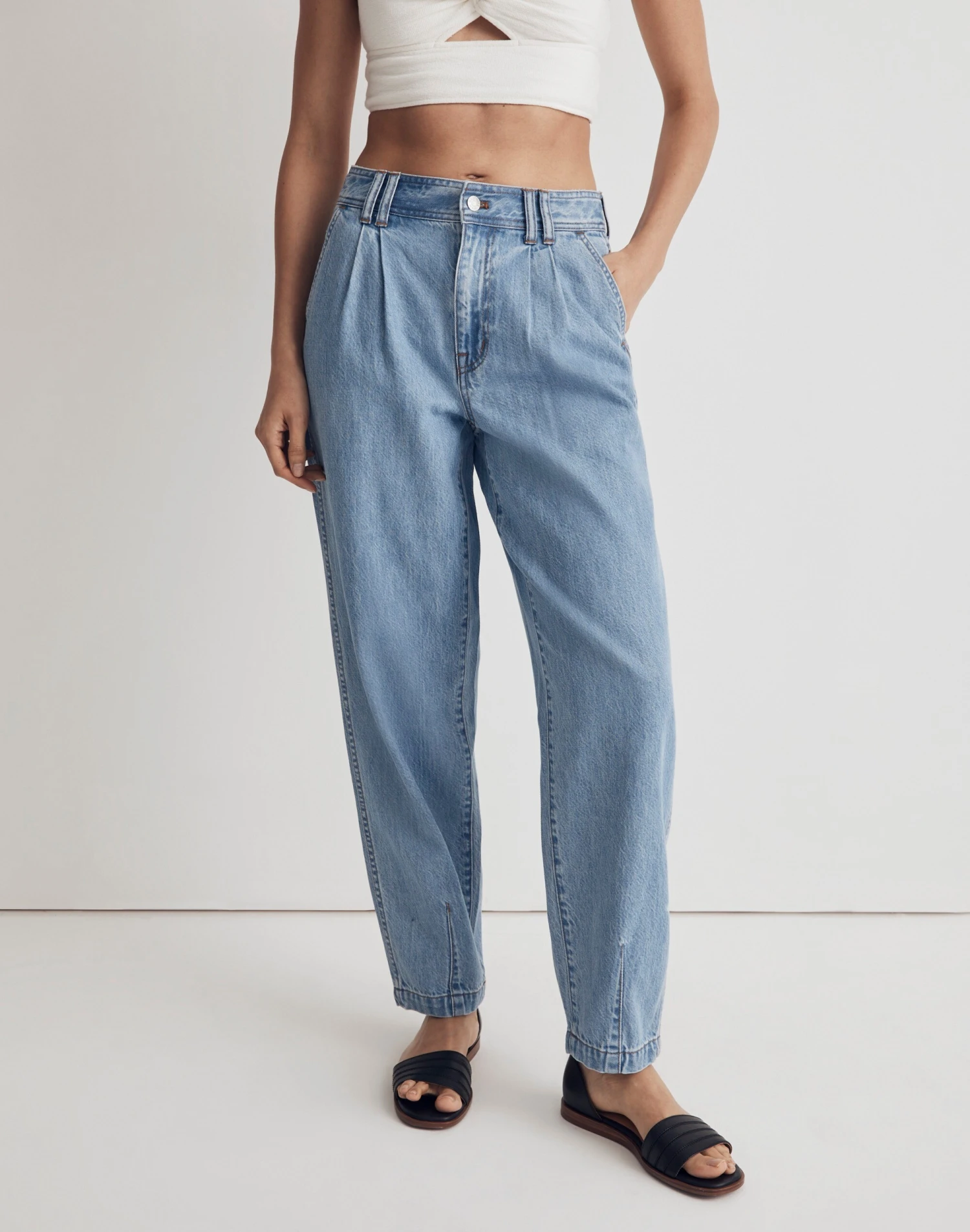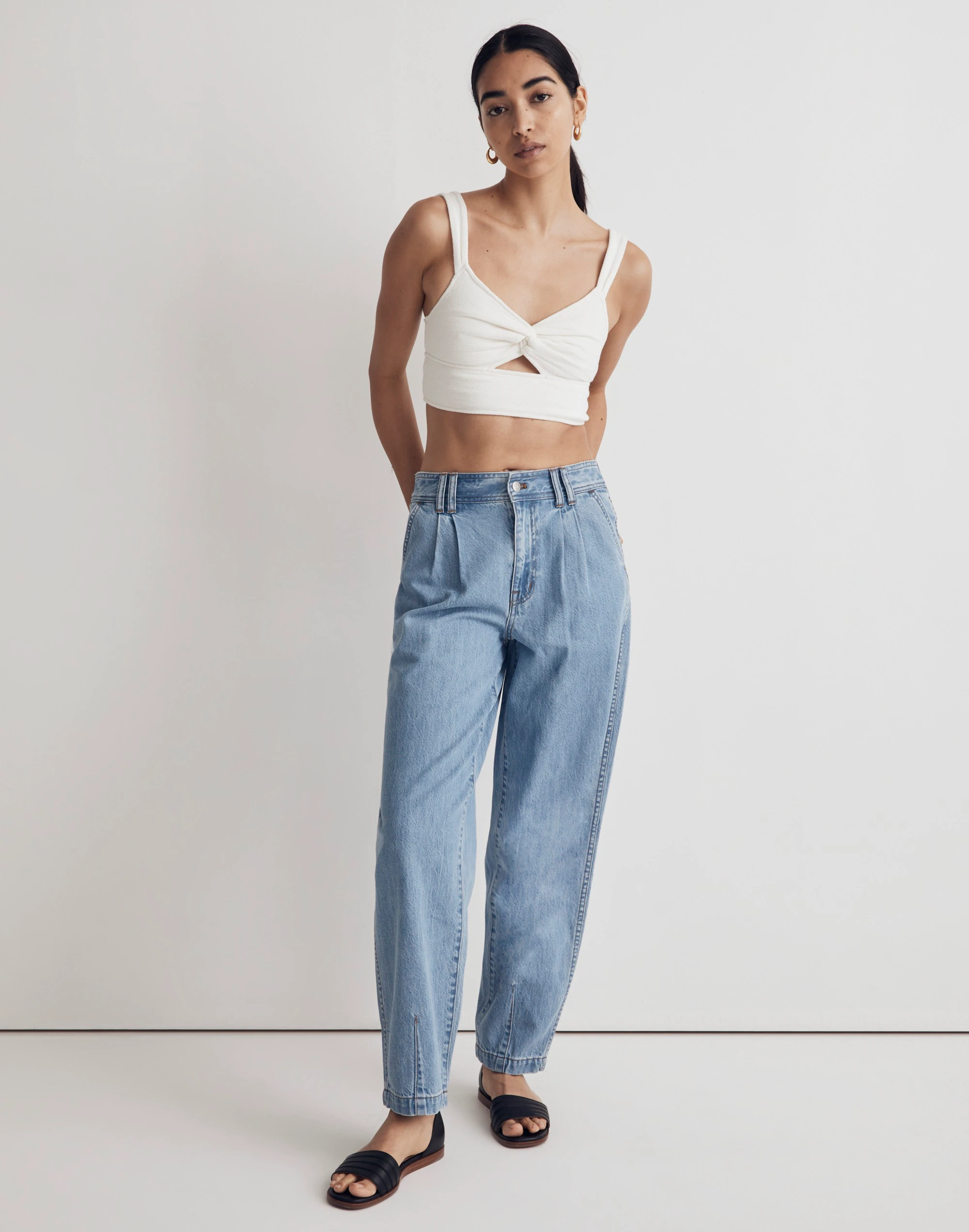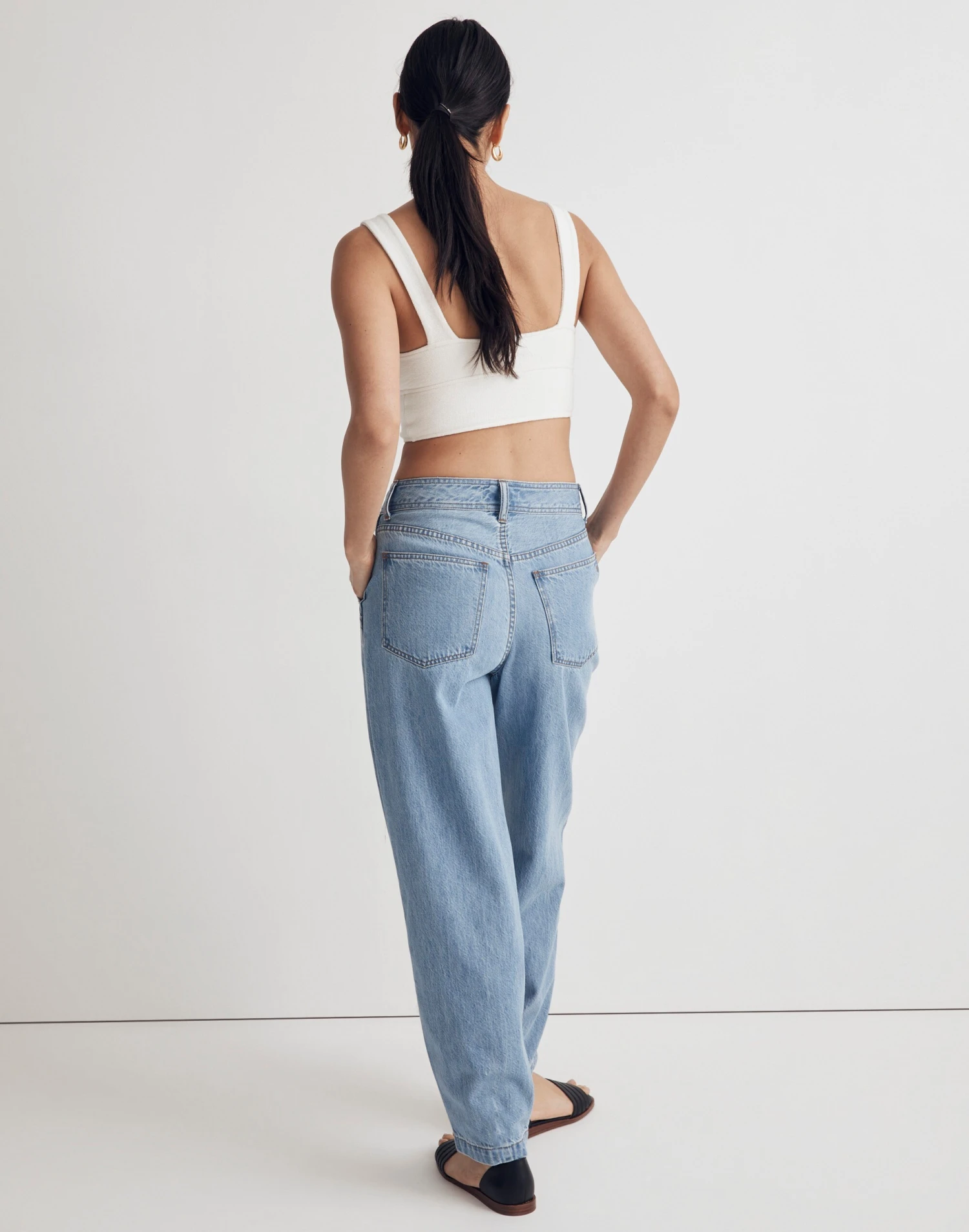 The cut: designed to go with a tiny tee, these best-selling baggy jeans are fitted through the high waist, easy through the thighs and have retro tapered legs.