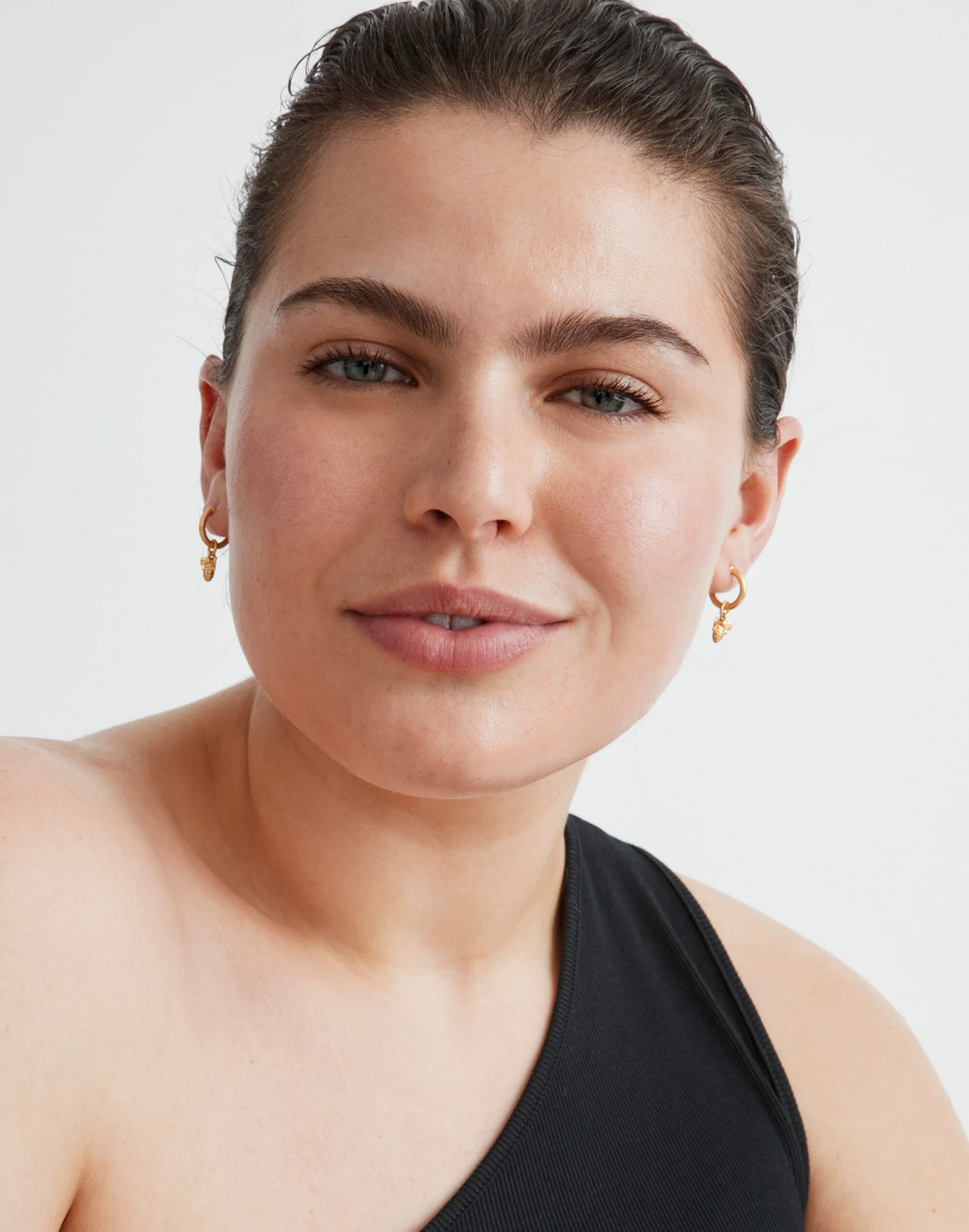 Sweet as honey (especially worn with the matching necklace set), these gold-plated huggie hoop earrings are hung with bee-shaped charms.