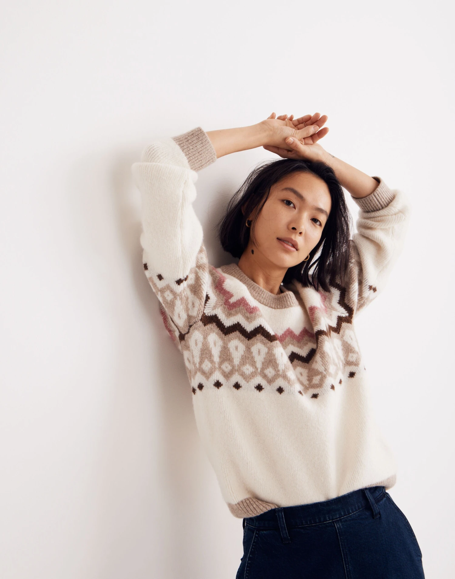 A twist on a classic vintage ski sweater, this updated pullover is knit from cozy, textured yarn in a fun Fair Isle pattern. Throw it on with a pair of comfy jeans for that undeniable nostalgic vibe.