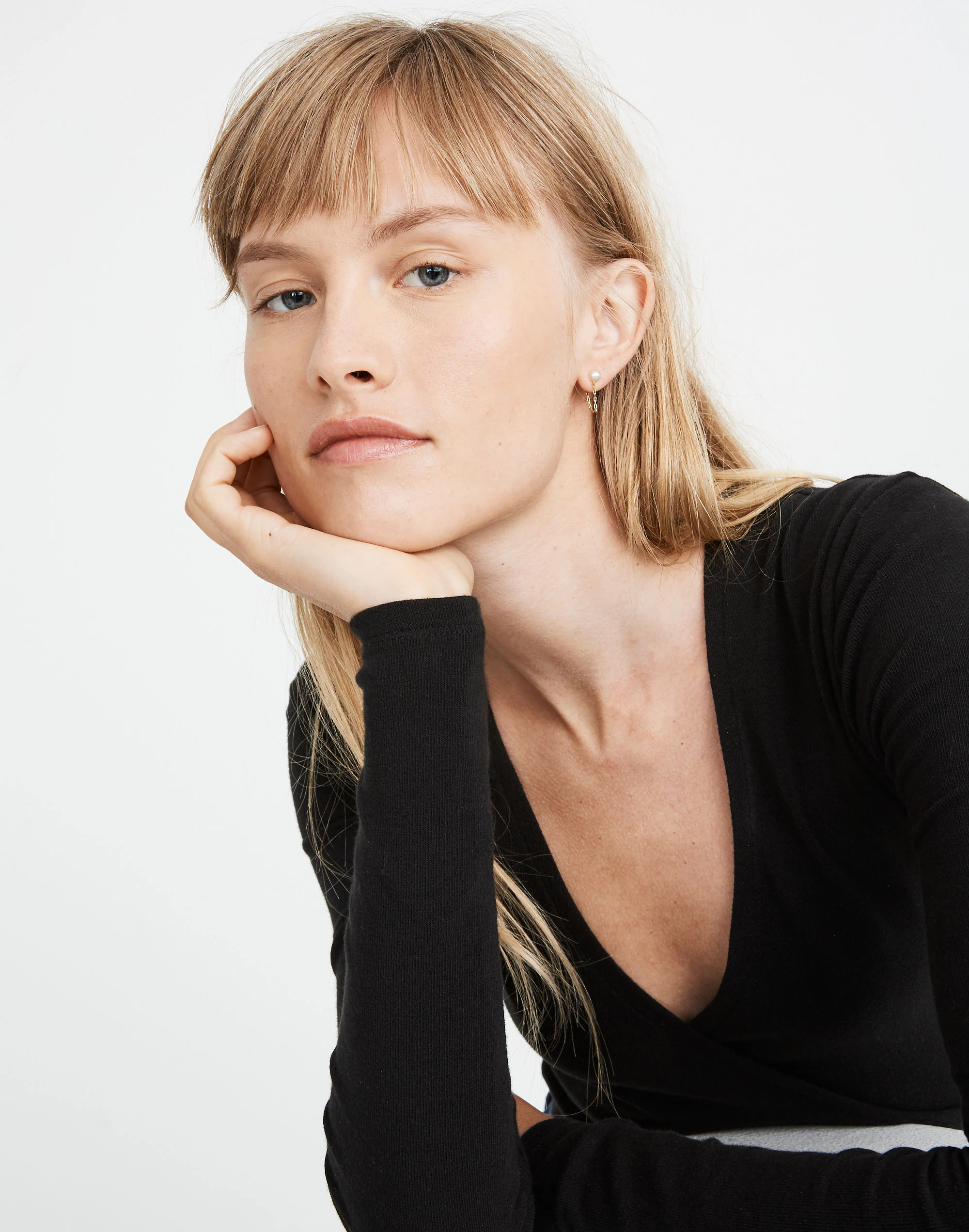 These pretty freshwater pearl stud earrings have a cool twist: a delicate gold-plated chain that attaches to the back and hangs just below your lobe for a little extra shimmer and movement.