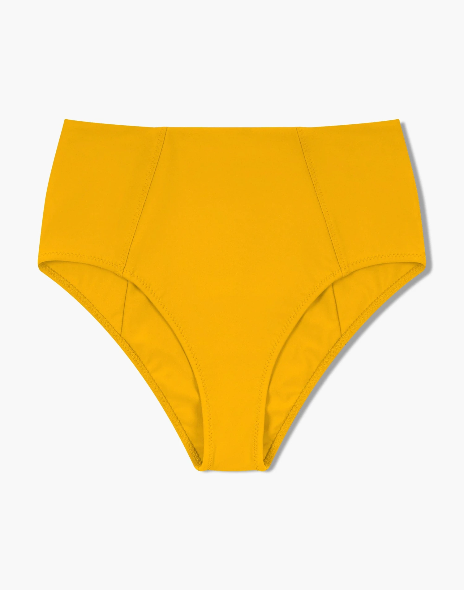 Modern and Mother Earth-friendly, GALAMAAR swimwear is produced in Los Angeles using sustainable nylon made from discarded fishing nets. A contemporary take on a retro classic. This high waist swimsuit bottom sits at your natural waist and features vintage contour seams and a cheeky back, so everything stays in place and looks amazing.