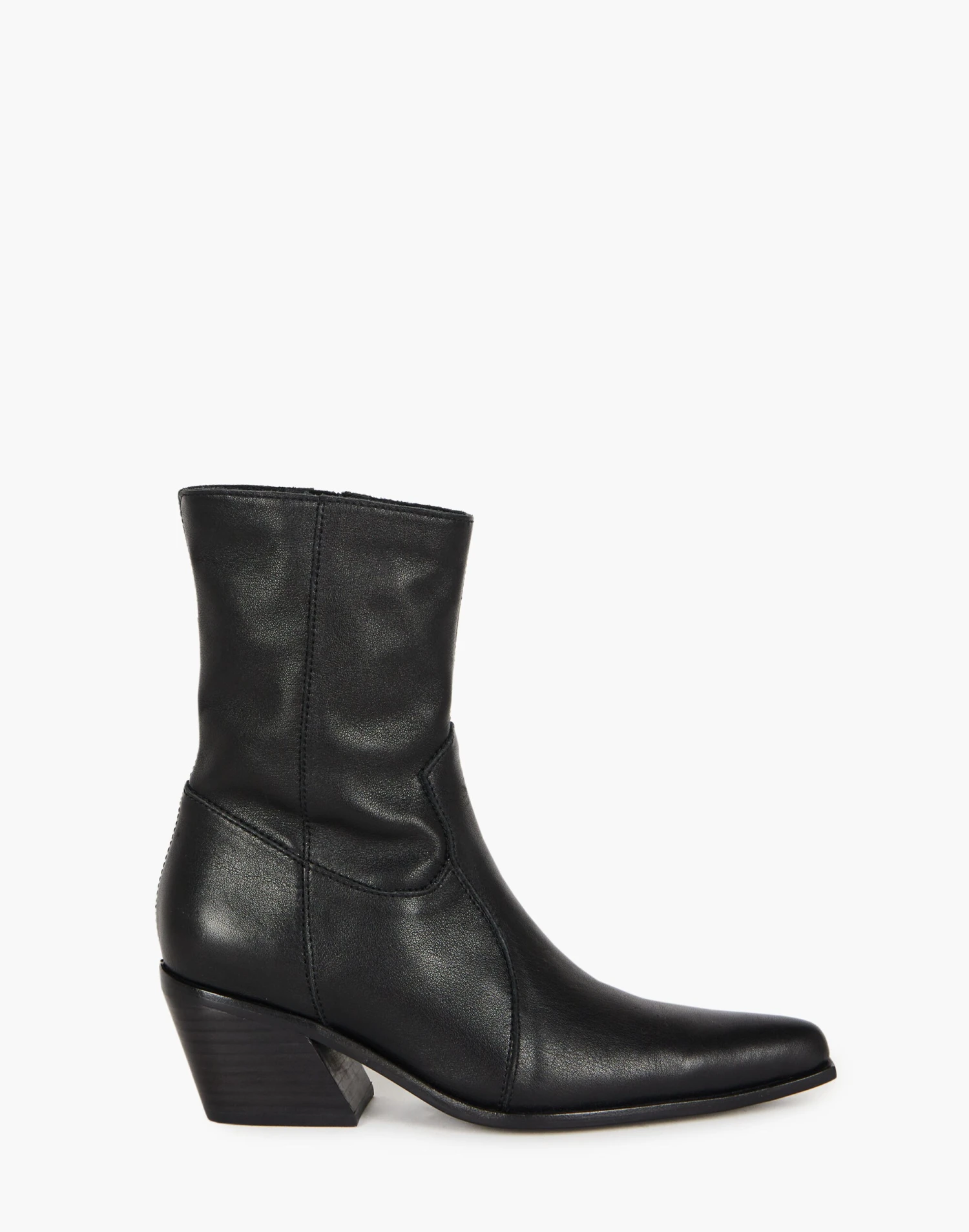 Based in LA, this modern, cool footwear brand makes designs that will help you fill in the blanks of your own personal style. Crafted in rich leather, these classic ankle boots have stacked heels and a Western feel. Ā