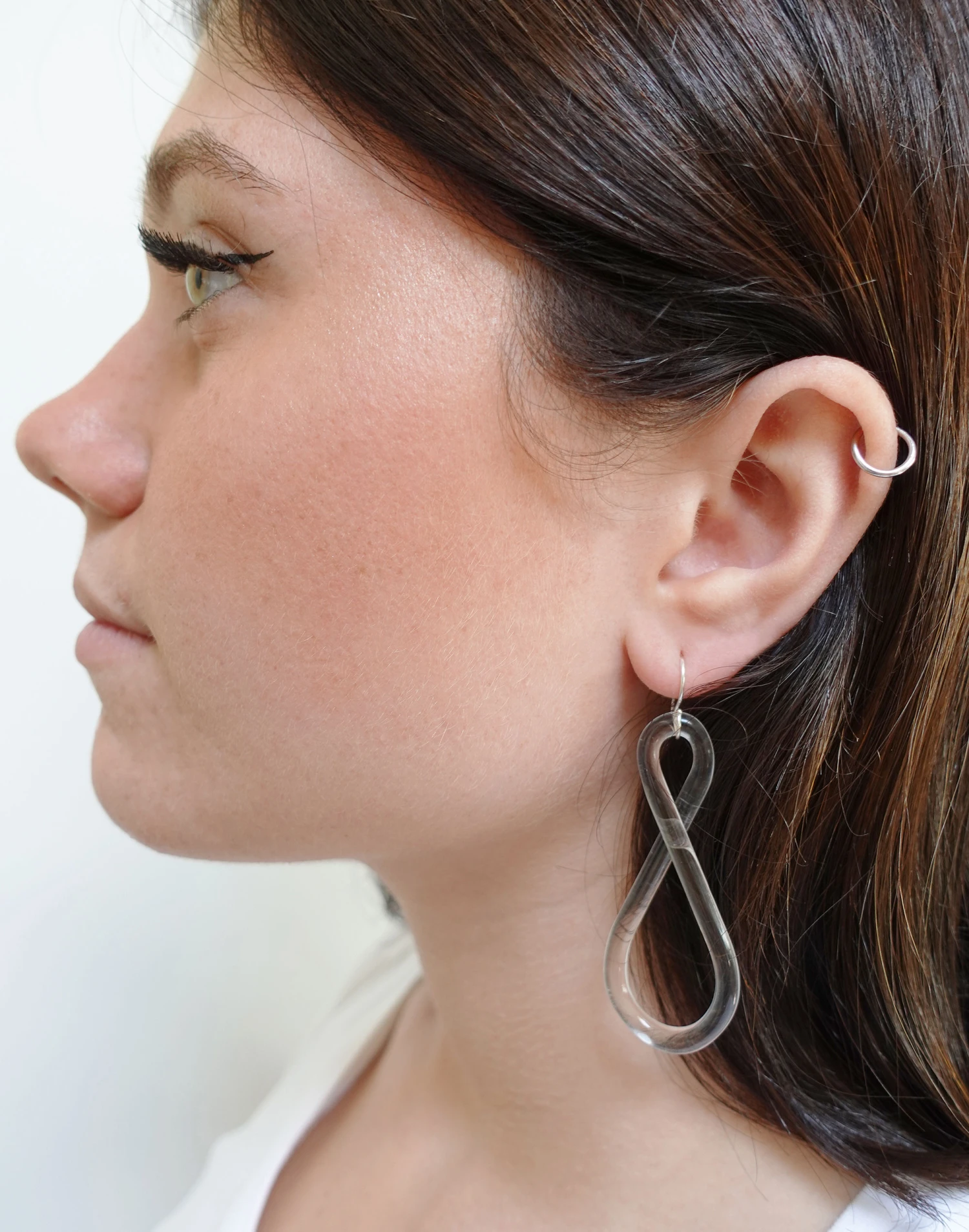 Give your outfit a twist with these fun earrings(!) Brooklyn-based artist Jane D’Arensbourg launched her sculptural glass jewelry line in 2002. Using heat & gravity, Jane D’Arensbourg hand-sculpts glass into light-catching jewelry with a torch. Ā