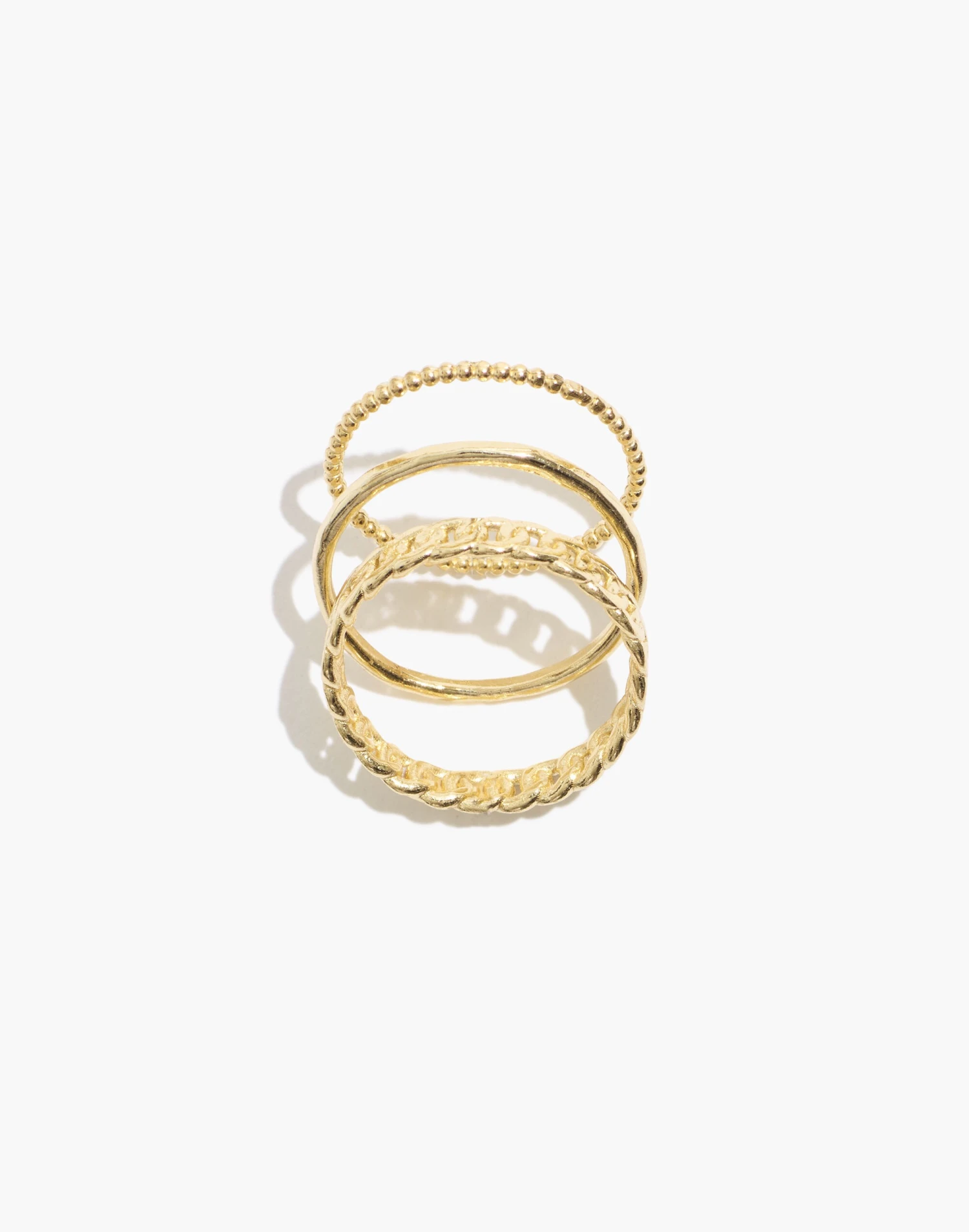 - Includes one figaro ring, one hammered ring and one beaded ring.