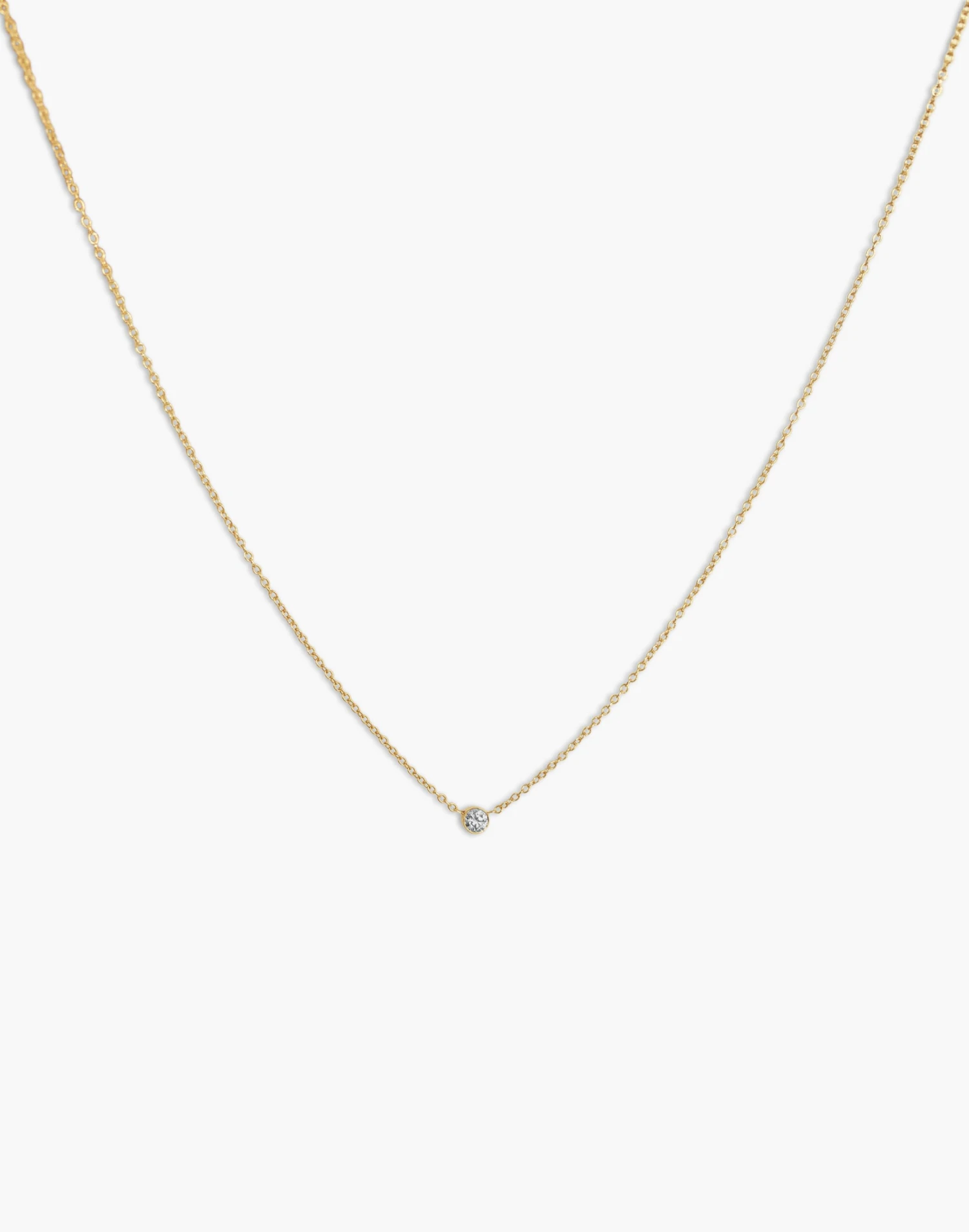 Handcrafted and designed to last a lifetime, Kinn founder Jennie Yoon’s sleek, sculptural fine jewelry pieces are modern heirlooms. Made of 14k solid gold, this delicate necklace has a tiny round diamond for a touch of subtle sparkle.