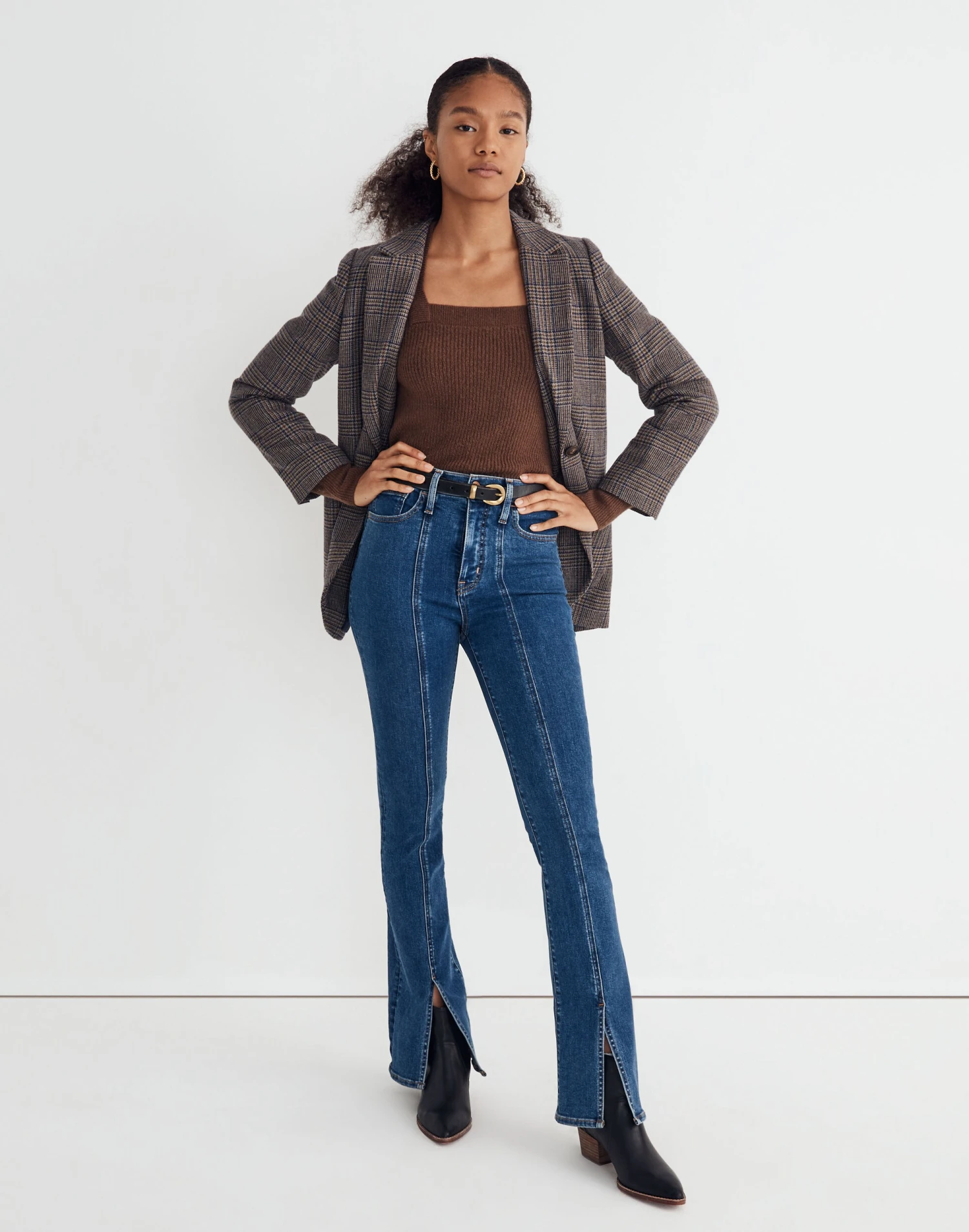 Denim that combines the holds-you-in structure of rigid with a touch of stretch for day-one comfort