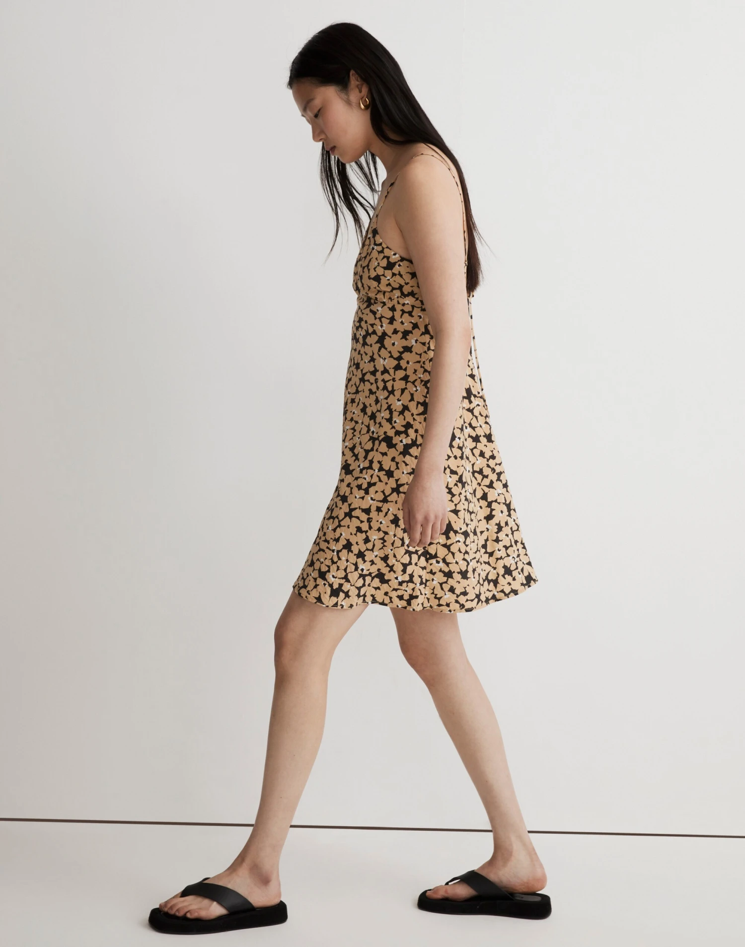 Woven with eco-friendly Lenzing™ Ecovero™ fibers, this highly anticipated mini slip dress drapes beautifully on the body. With adjustable cami straps, a sexy V-neckline and angular seaming at the bust, it’s the perfect one-and-done party piece, or wear it layered for an easy pared-down moment.