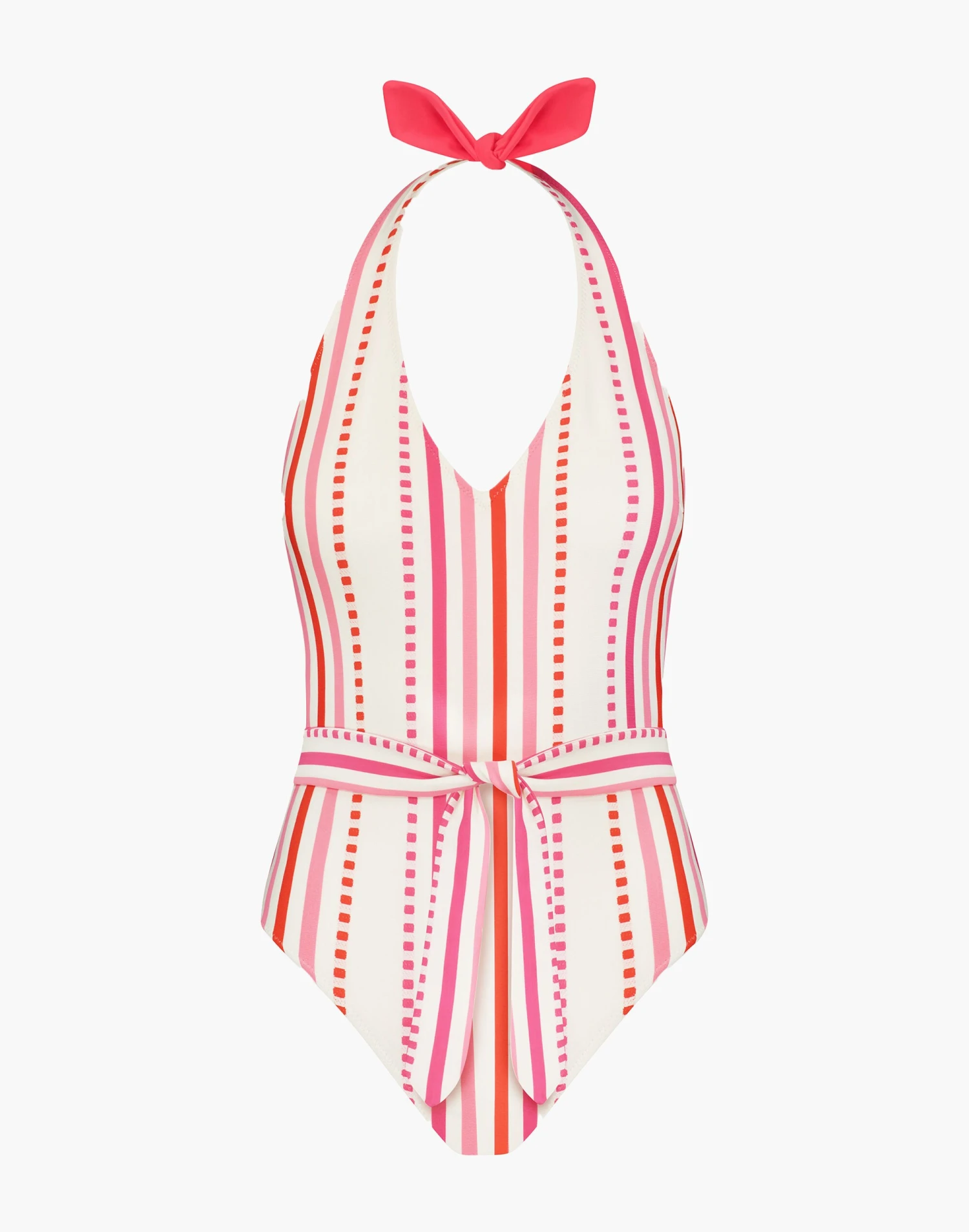 Founded by supermodel and activist Liya Kebede, lemlem’s handwoven clothing and home goods are made entirely in Africa by local artisans. Where simplicity meets sexy(!) This silhouette features a classic plunge neckline with a neck tie and a removable tibeb belt.This suit offers a lot of room in the bust and transitions seamlessly from swimsuit to bodysuit.