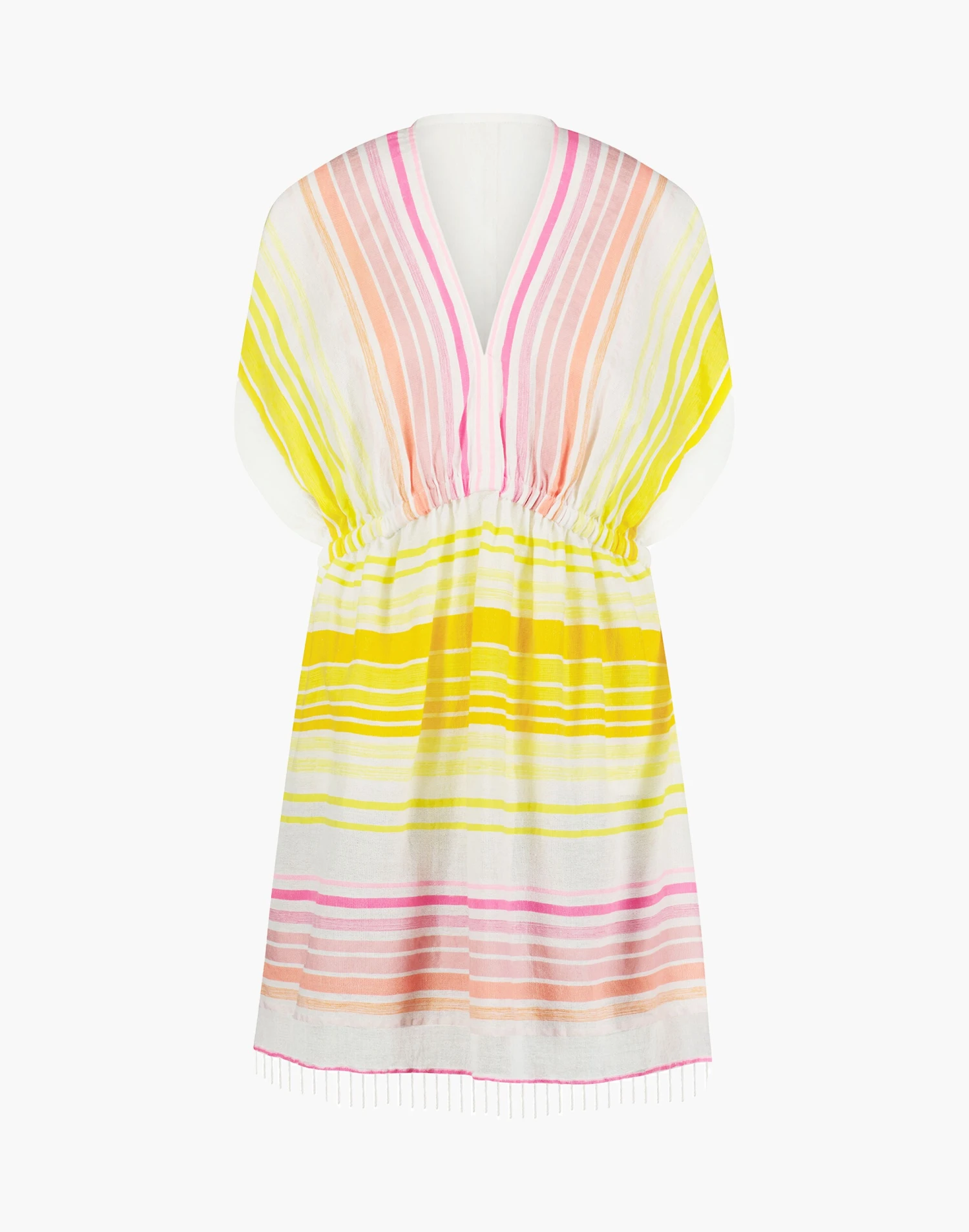 Founded by supermodel and activist Liya Kebede, lemlem’s handwoven clothing and home goods are made entirely in Africa by local artisans. This versatile dress is hand woven in super-soft hand spun cotton, the diaphanous dolman sleeve creates an hourglass silhouette. The deep V or plunge-neckline, gathers into a comfortable elastic waist. The breezy tiered ruffle hem exudes femininity and ease. It’s one of our go-to’s for simple “one and done” dressing, that flatters your