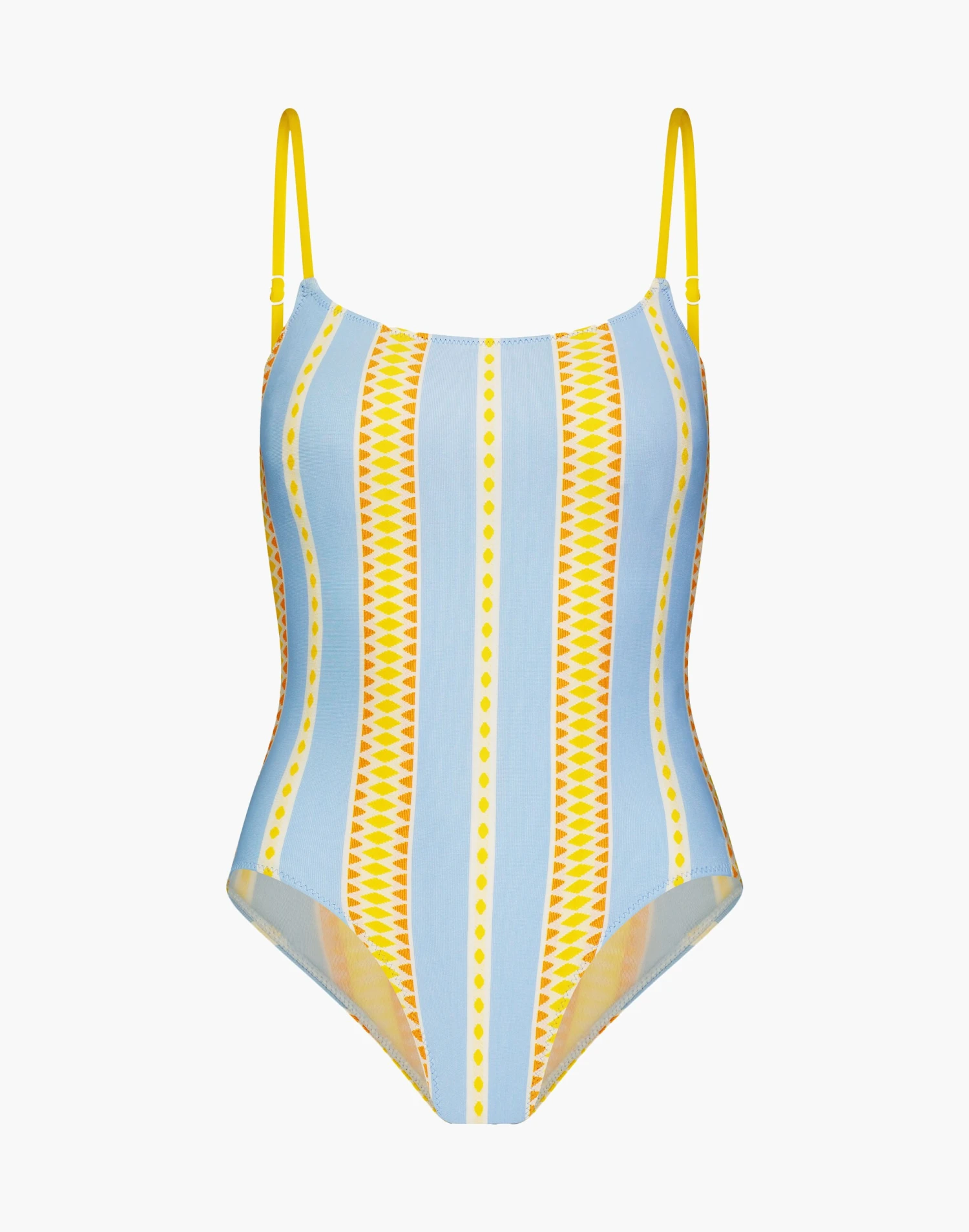 Founded by supermodel and activist Liya Kebede, lemlem’s handwoven clothing and home goods are made entirely in Africa by local artisans. The Classic One Piece is one of our newer silhouettes and is an instant classic. This suit features a scoop neckline and solid black spaghetti straps.