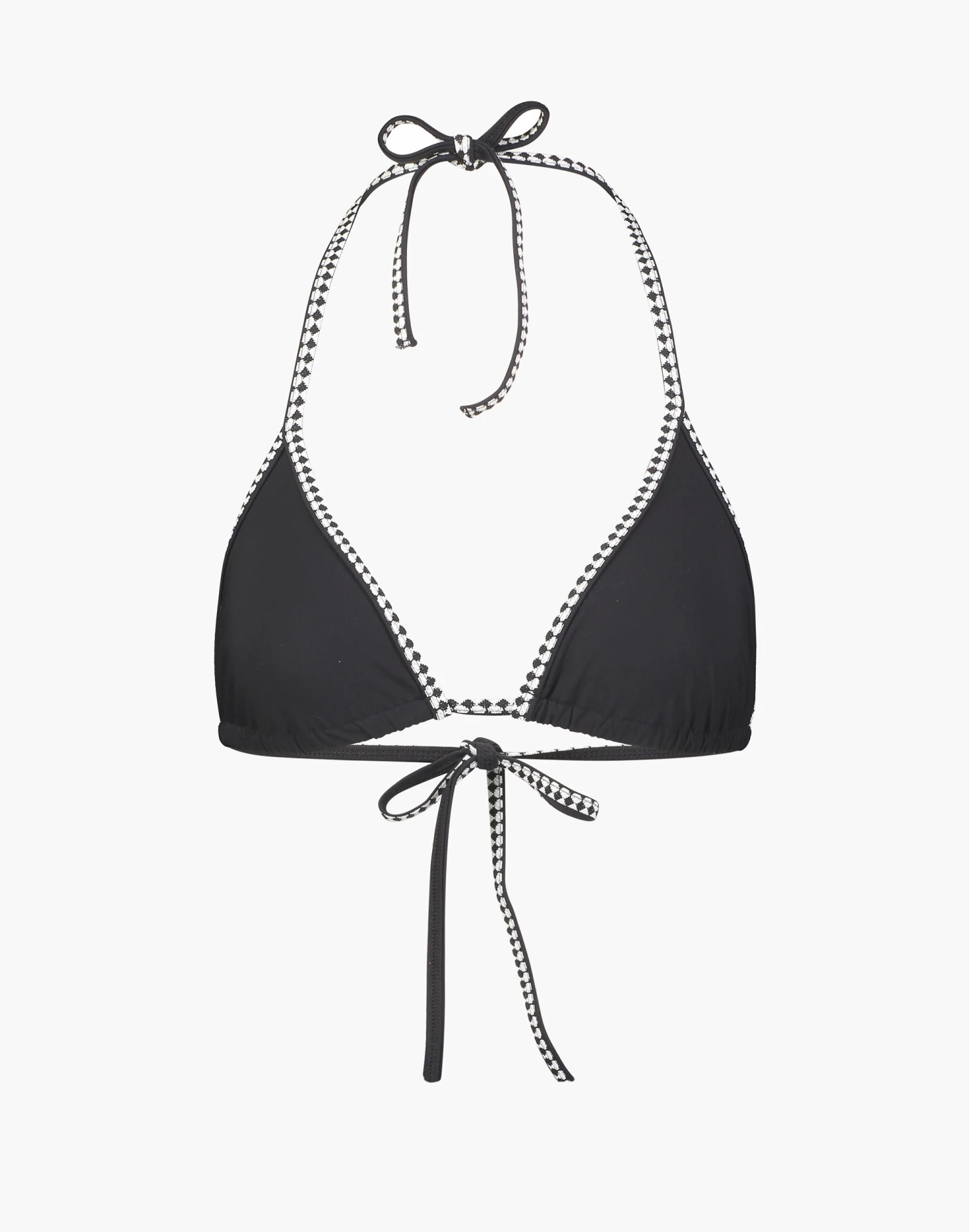 Meaning “to bloom or flourish,” Lemlem celebrates traditional African weaving (supermodel founder Liya Kebede hails from Ethiopia). Made in Morocco, this triangle bikini top has adjustable string ties.