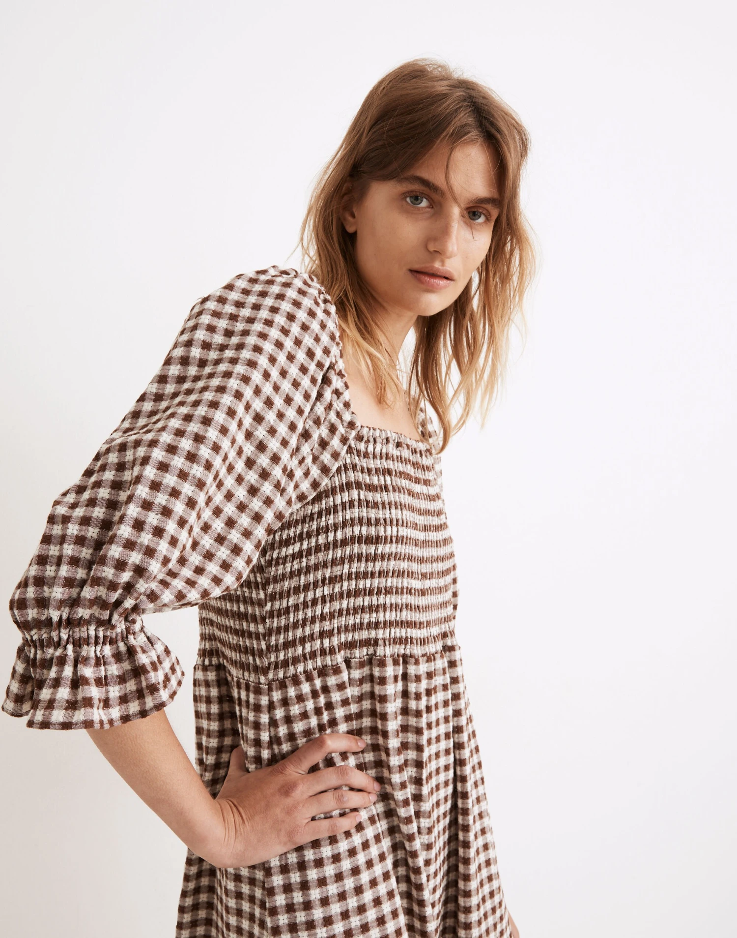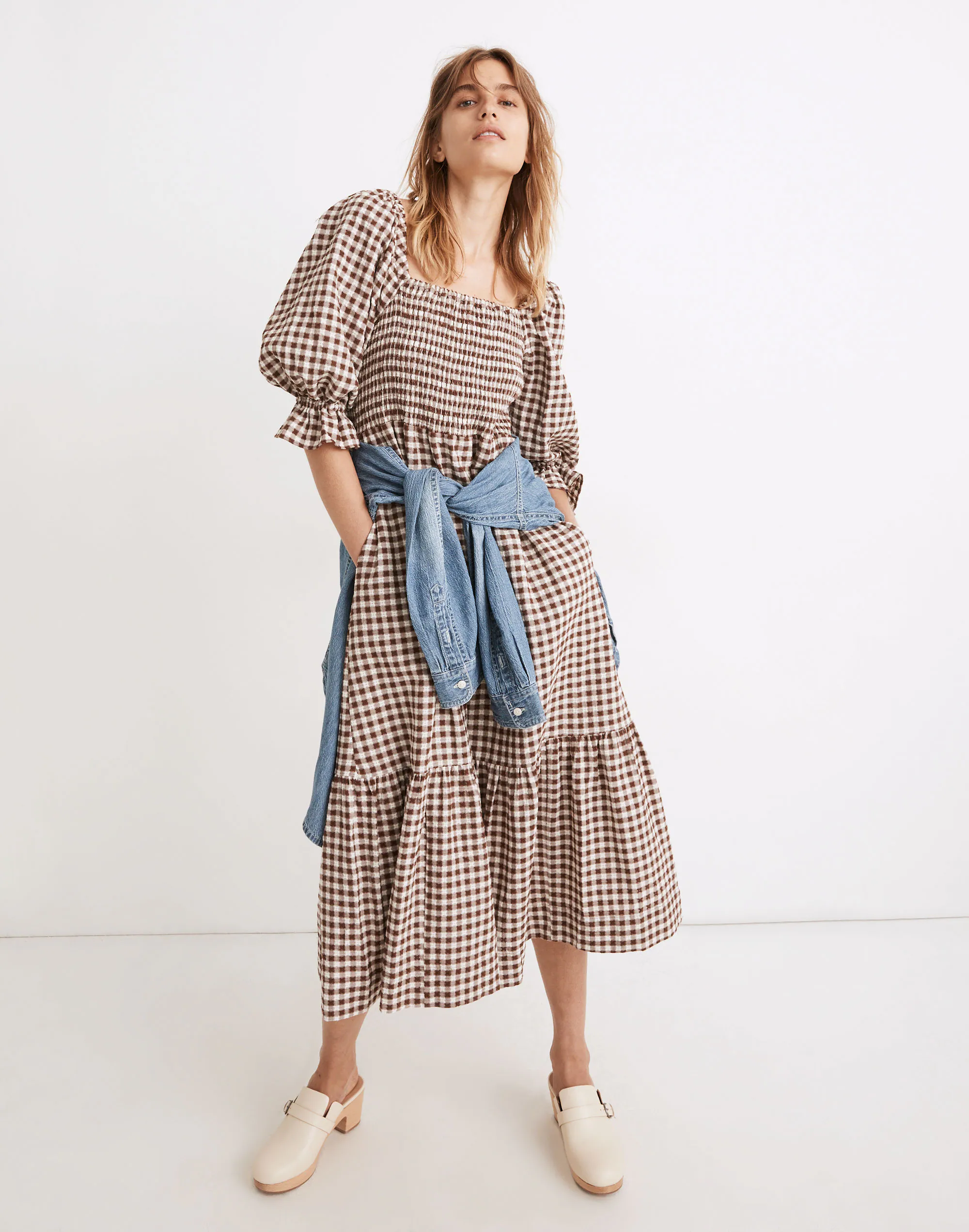 The prettiest way to be comfy (and a best seller), this textured gingham midi dress has elbow-length puff sleeves and a stretchy smocked bodice, plus pockets (!). Easy on the body but so special, you’ll want to wear it everywhere you go. Â