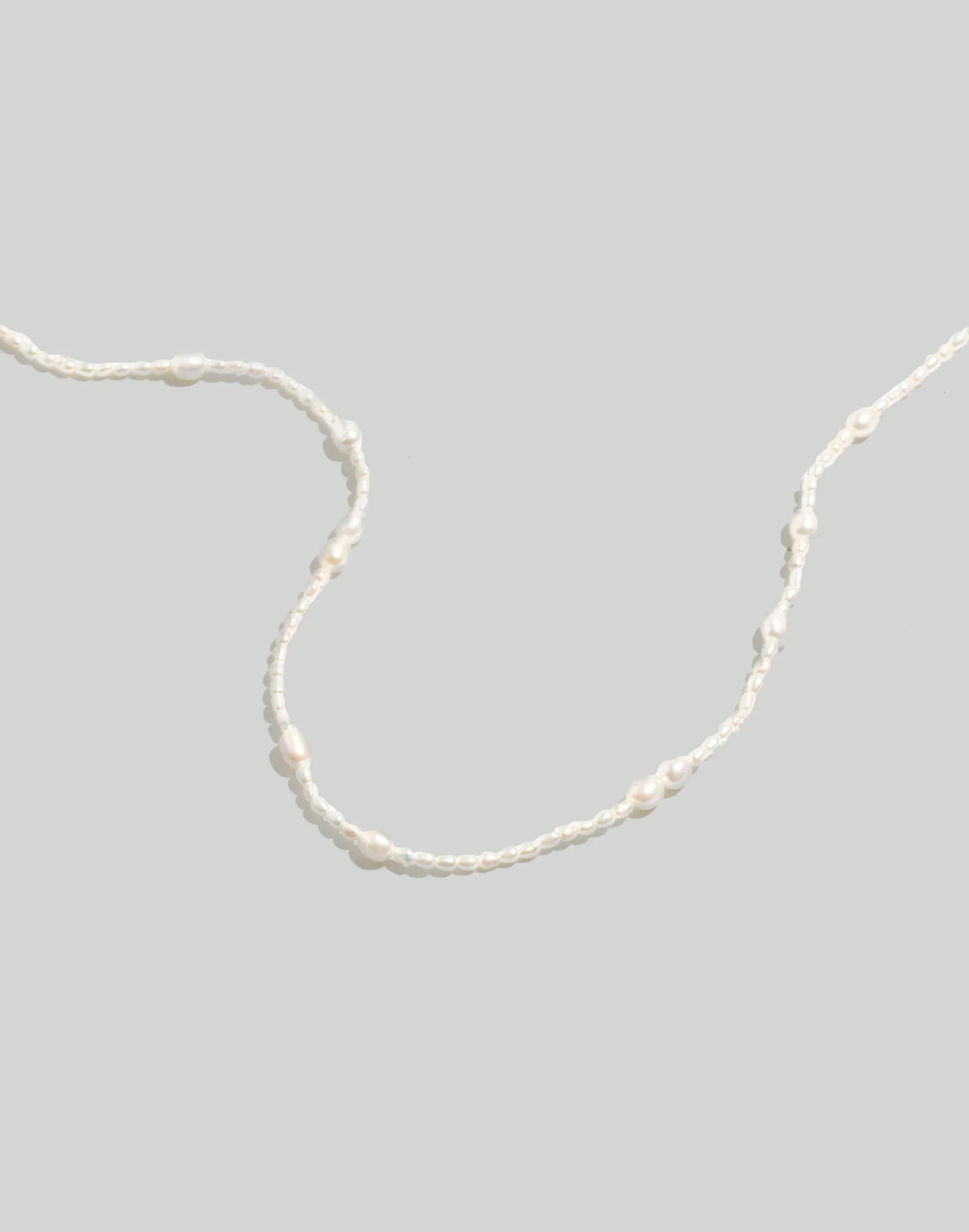 A layering staple, this luminous choker necklace is strung with a combination of freshwater and acrylic pearls for a “found on the ocean floor” feel.