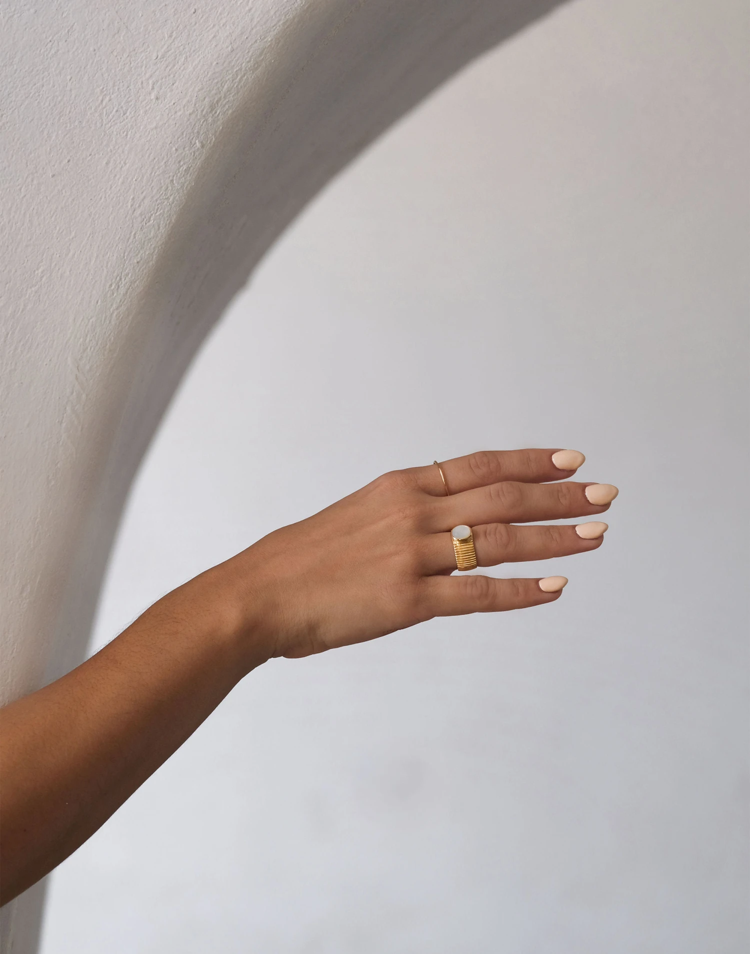 All about “less is more” MUNS creates timeless high-quality pieces that last a lifetime. Bold and classy at the same time, this is the perfect statement ring with its wide textured design and natural mother pearl stone.