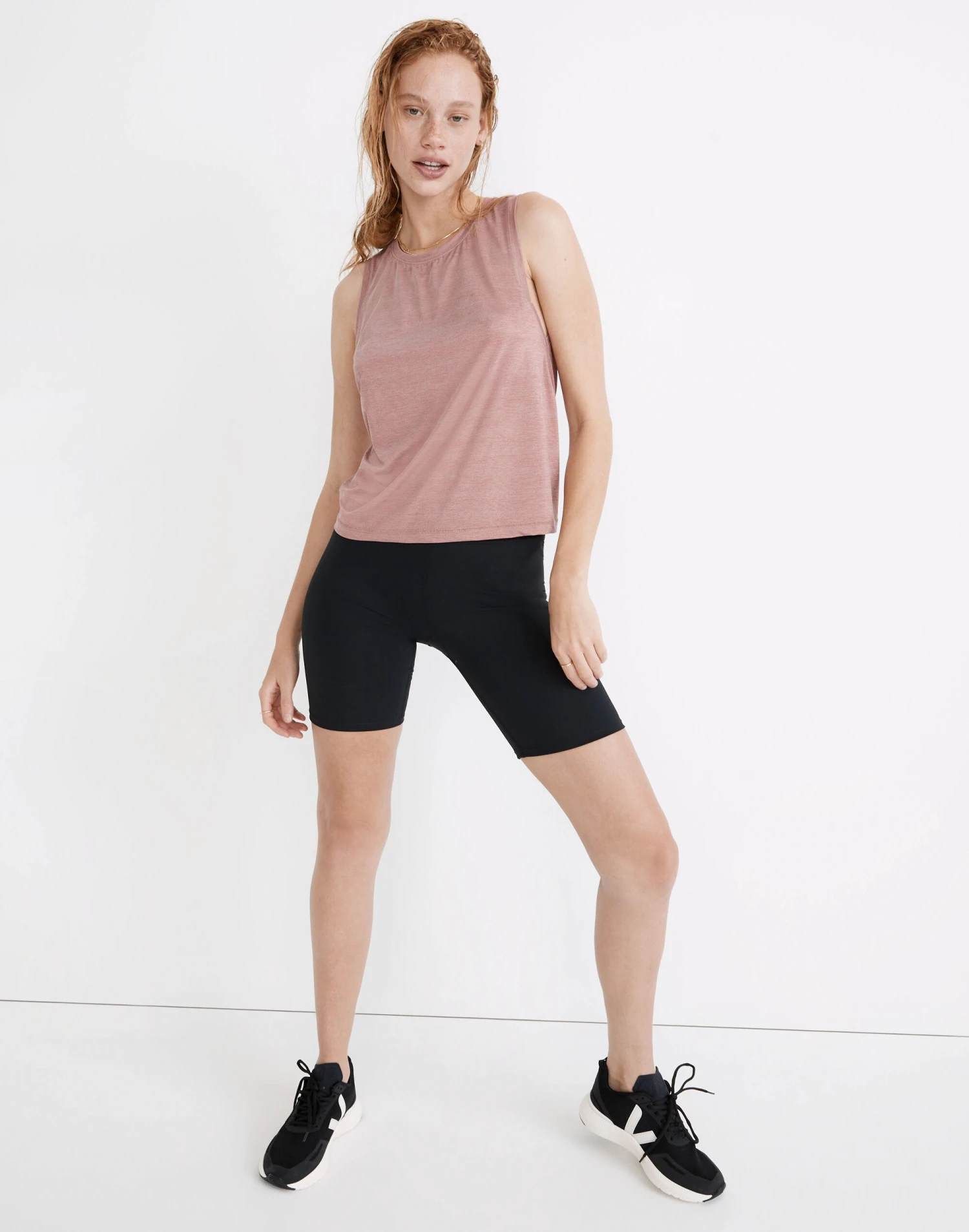 The fabric: made of recycled polyester, it’s breezy, sweat-wicking and offers UPF 40+ sun protection. The fit: designed for running (and layering over a sports bra), this tank has low armholes and a loose fit to give you both kinds of cool.