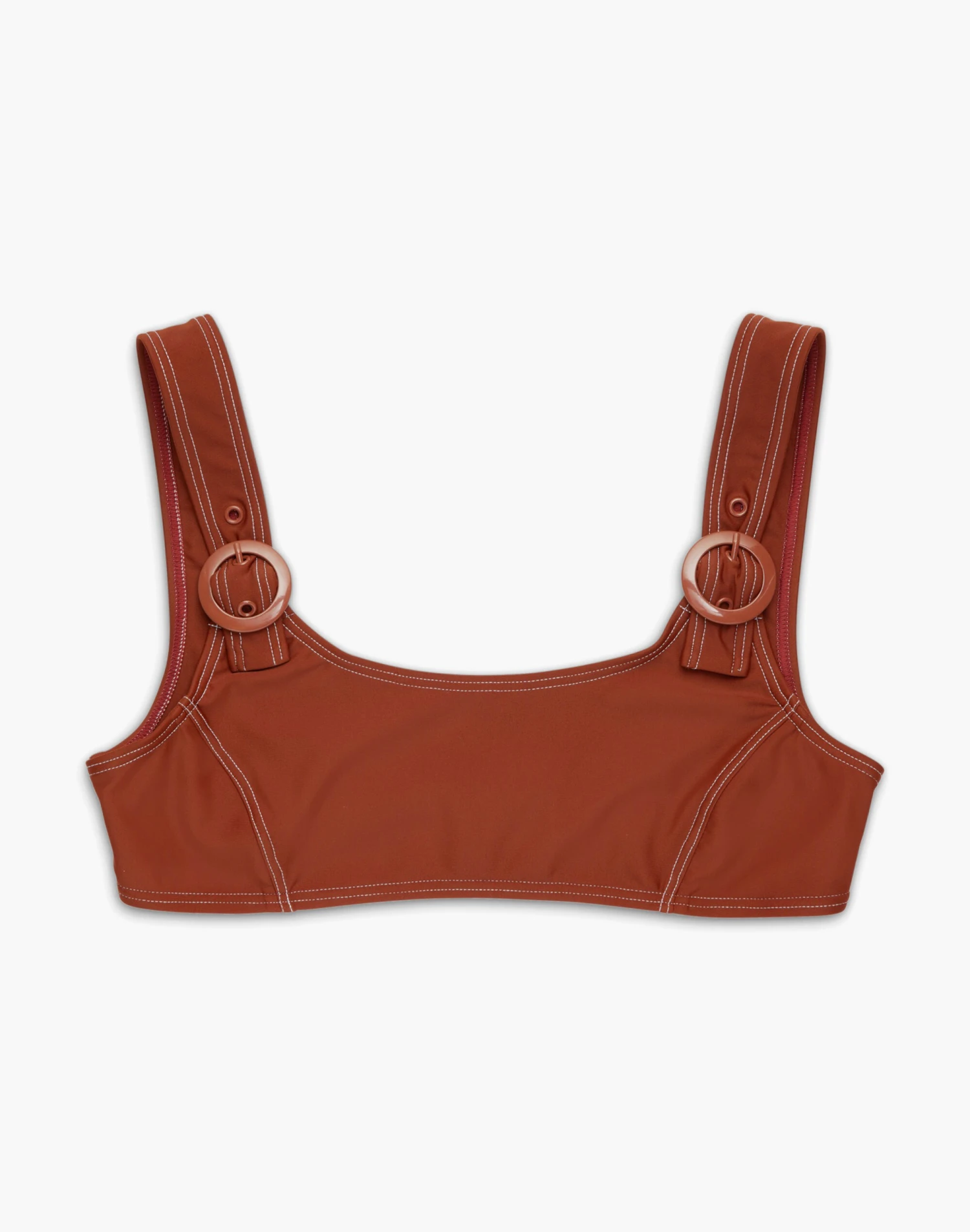 Using fabric made from 100% regenerated waste (meaning things like discarded fishing nets), this sustainable swimwear line creates modern suits with a hint of nostalgia. Featuring adjustable straps, signature rings, and contrast stitching, this top is stylish enough to wear by the pool or pair it with a high waisted skirt and heels for the perfect cocktail hour fit. Â