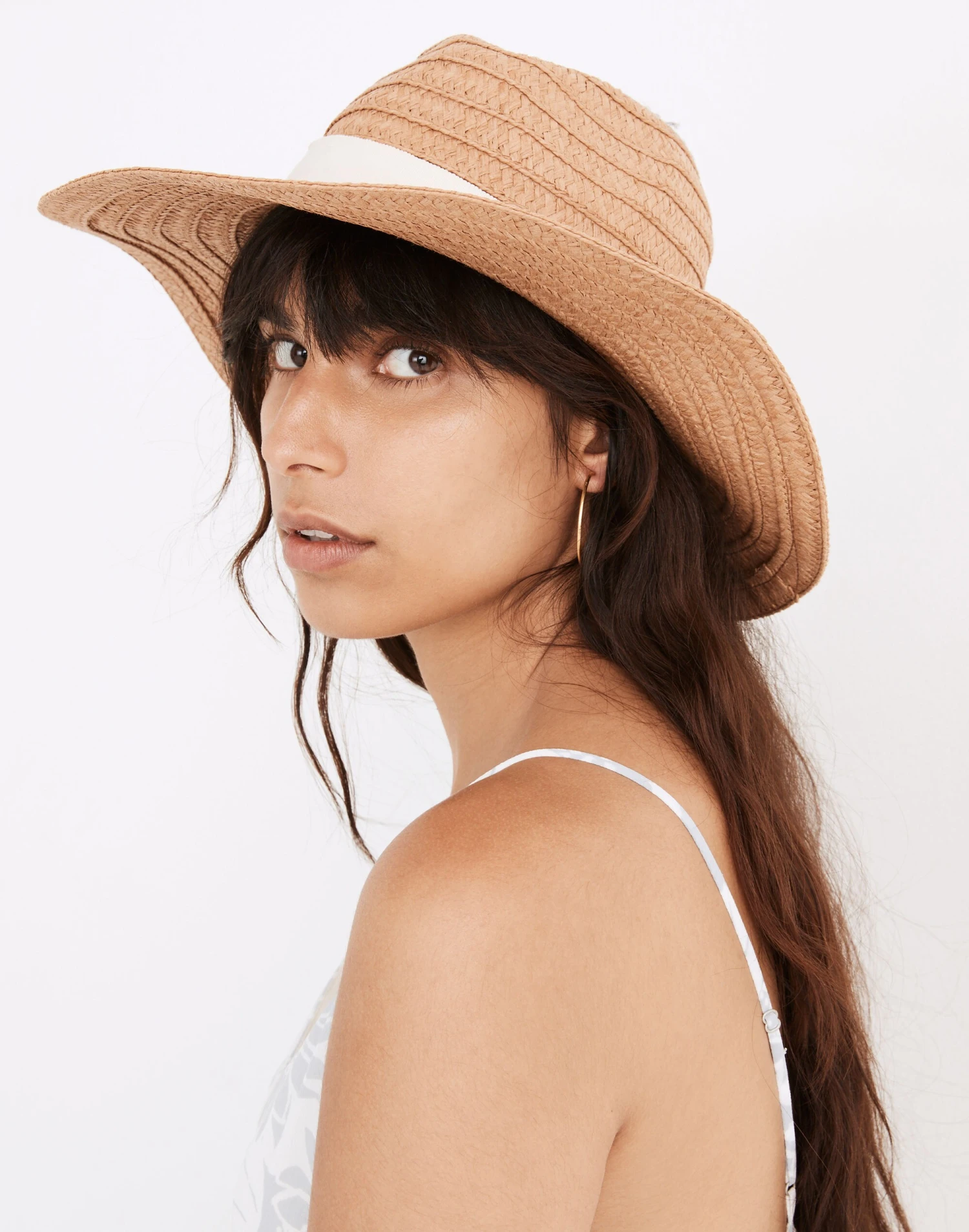 Go ahead and throw this braided straw hat into your bag. It’s perfectly unstructured so you don’t have to be too careful when packing it up.