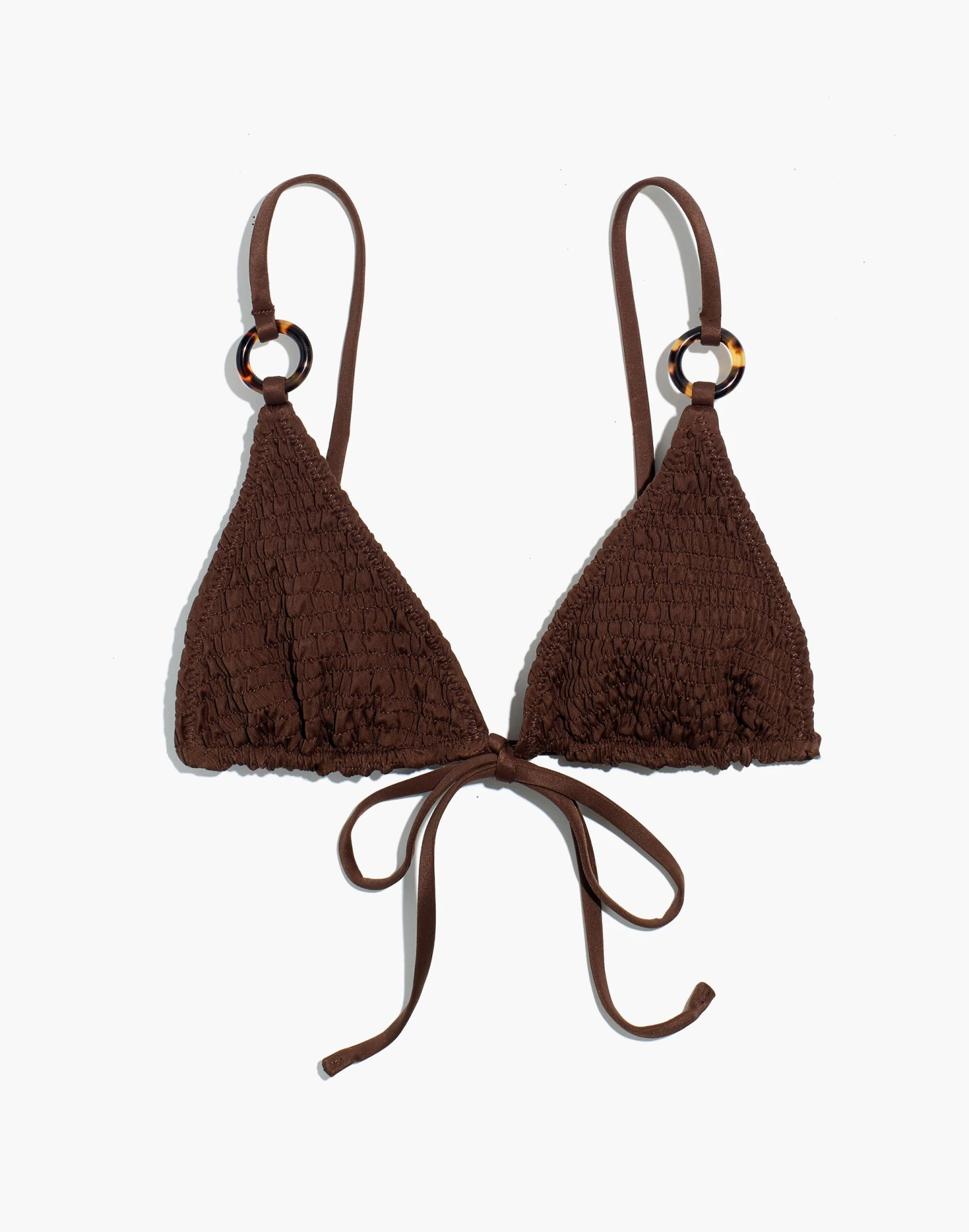 Stylish and sustainable, Palm Swimwear was founded in Western Australia where the pursuit of the perfect suit is serious business. Made with regenerated nylon and superluxe® Lycra XTRA LIFEâ„¢ spandex (so it won’t stretch out or fade), this sexy string bikini top has adjustable straps that tie in front.