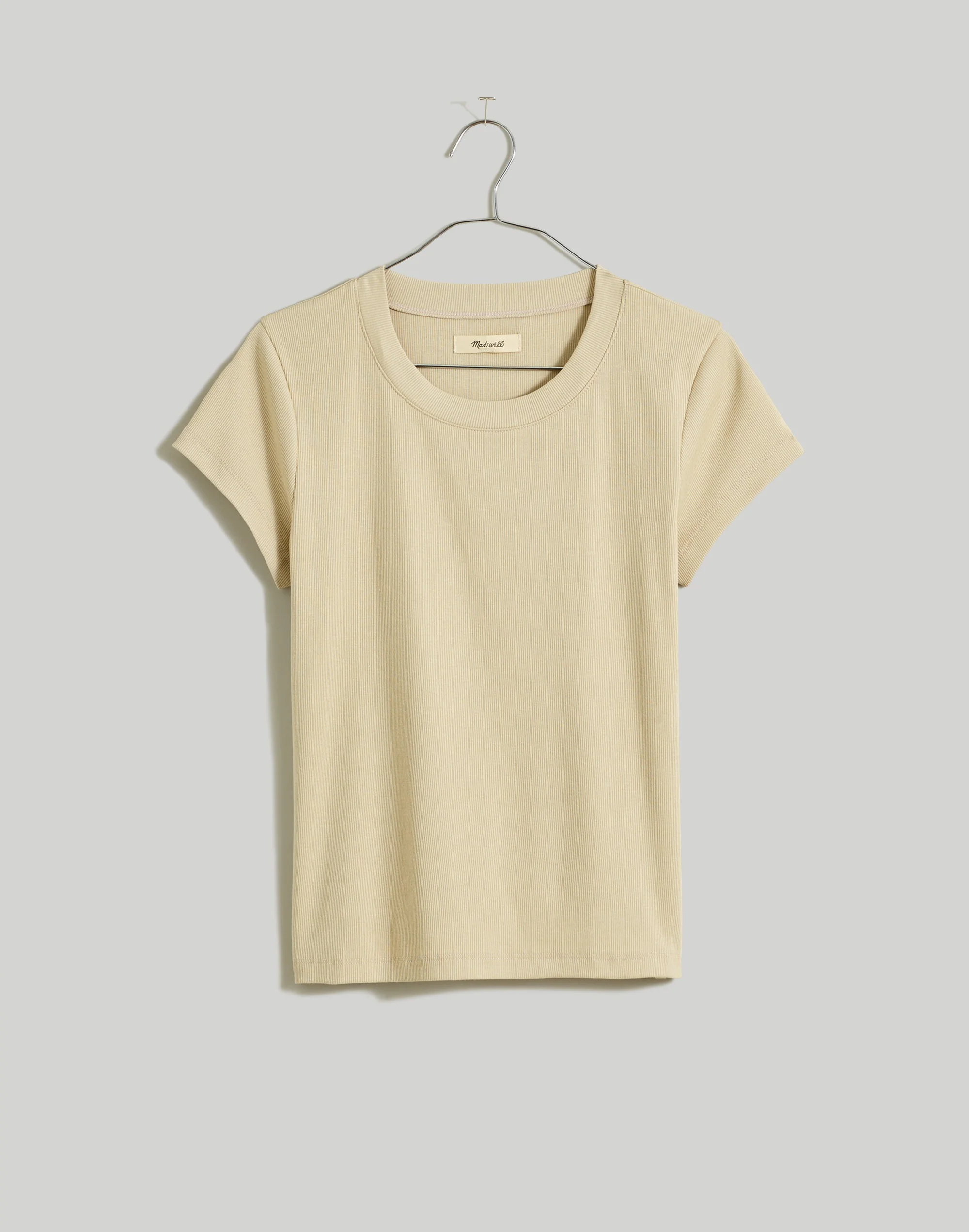 You love the soft ribbed fabric of our best-selling Brightside tank—and the way it’s formfitting without showing everything—so we used it to make the perfect tee. Shrunken, cropped and so, so good with baggy jeans.
