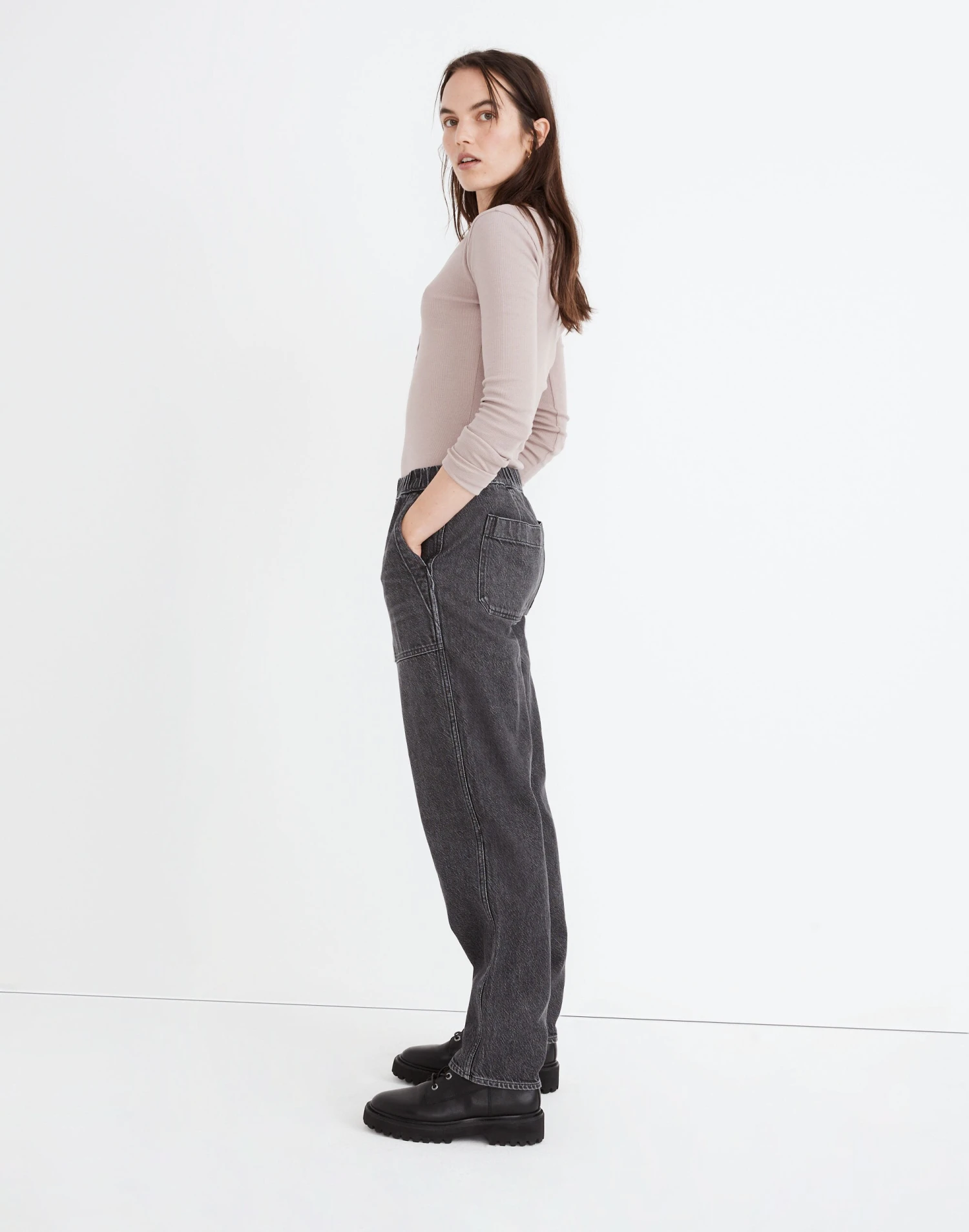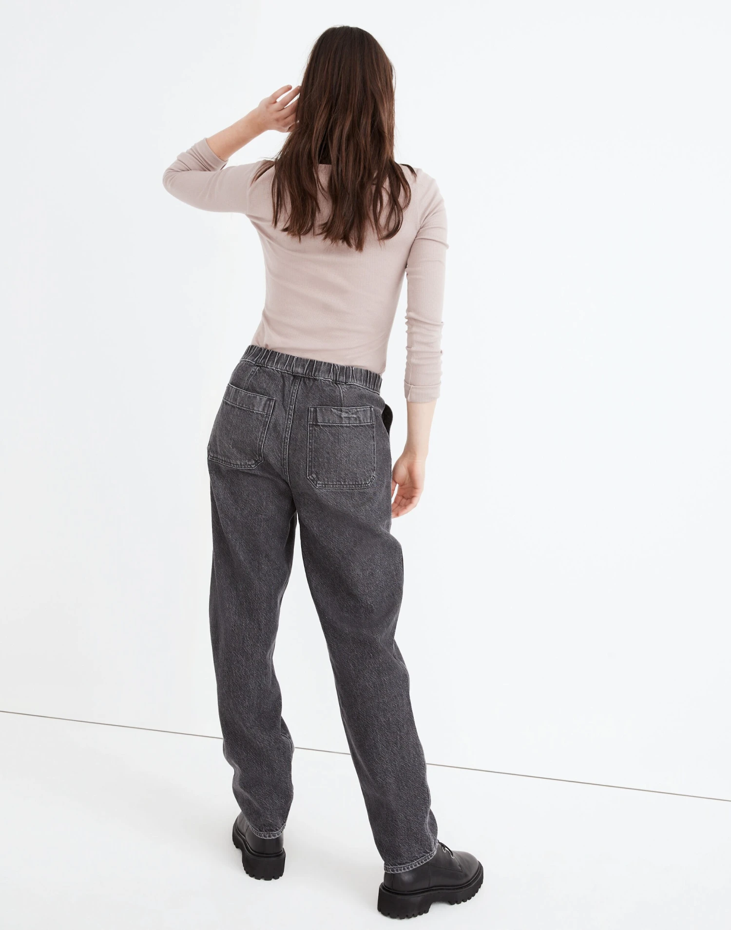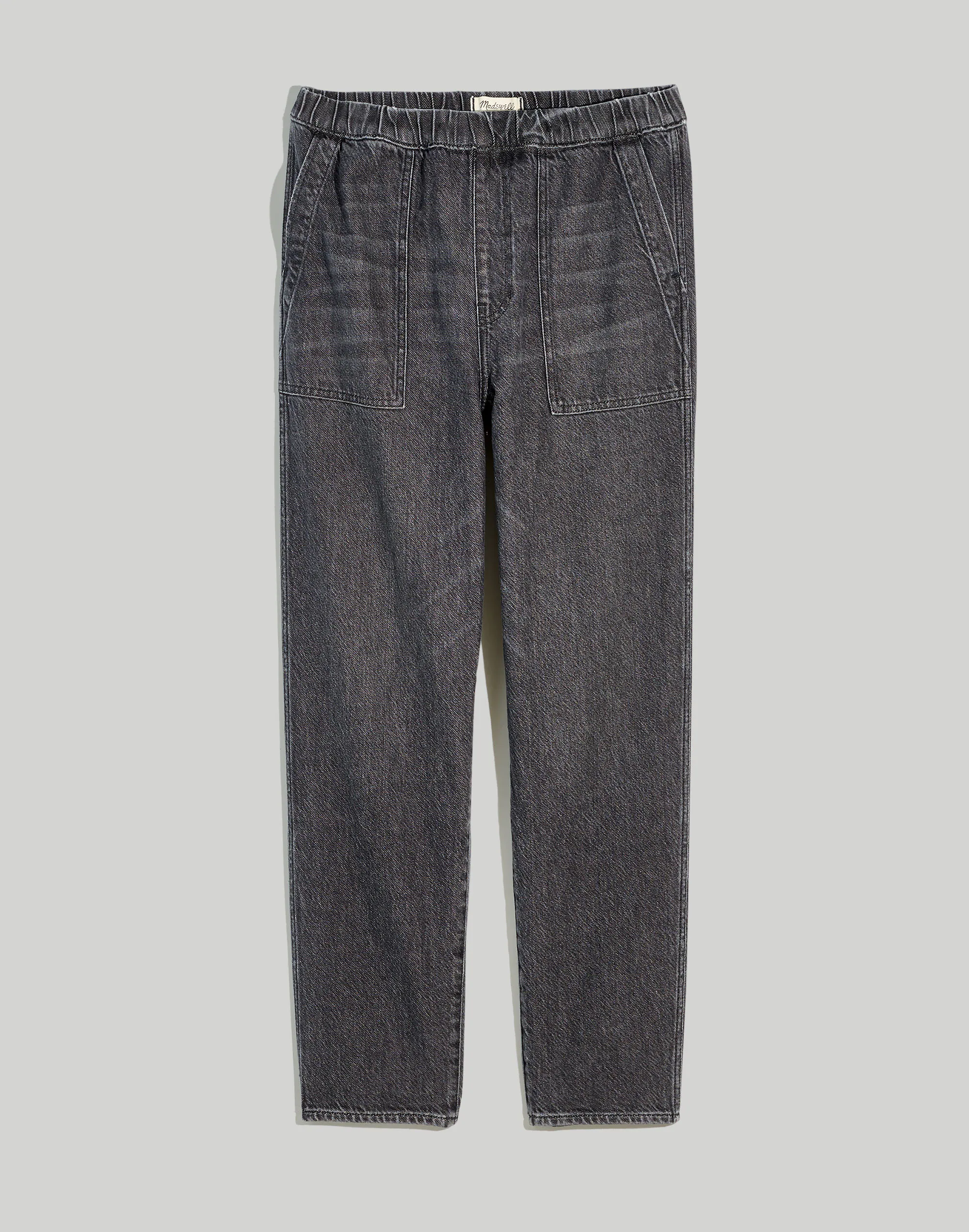 The cut: Like a cross between joggers and jeans, this sweats-inspired fit has an elastic waist and comfy straight legs. The fabric: Old-school 100 percent cotton denim with zero stretch.