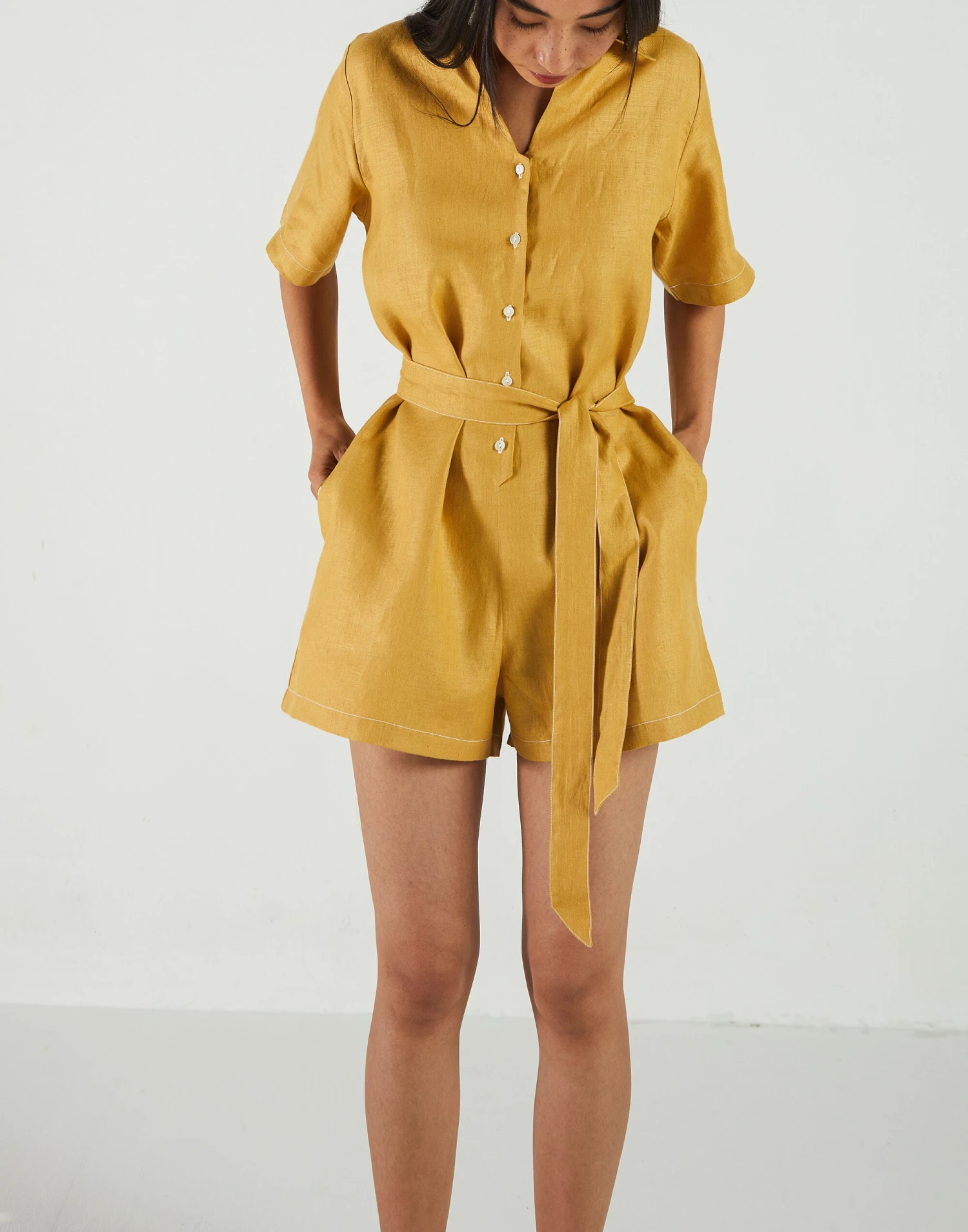 Pronounced “restore,” Reistor is devoted to sustainably produced clothing that can last a lifetime. A casual yet sophisticated romper, made from 100% hemp this garment is super comfortable and easy to wear. Â
