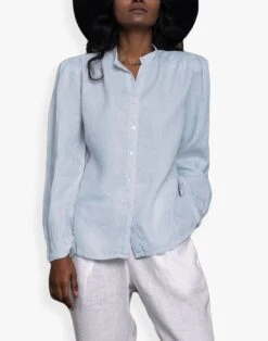 Pronounced “restore,” Reistor is devoted to sustainably produced clothing that can last a lifetime. The little details make all the difference in this pleated button-down shirt with shoulder pads for added structure. Â