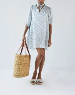Pronounced “restore,” Reistor is devoted to sustainably produced clothing that can last a lifetime. A timeless silhouette, this dress features a print inspired by blue skies and wisps of clouds floating across. Wear this as a cover up on the beach or on its own for a day out in the sun. Â