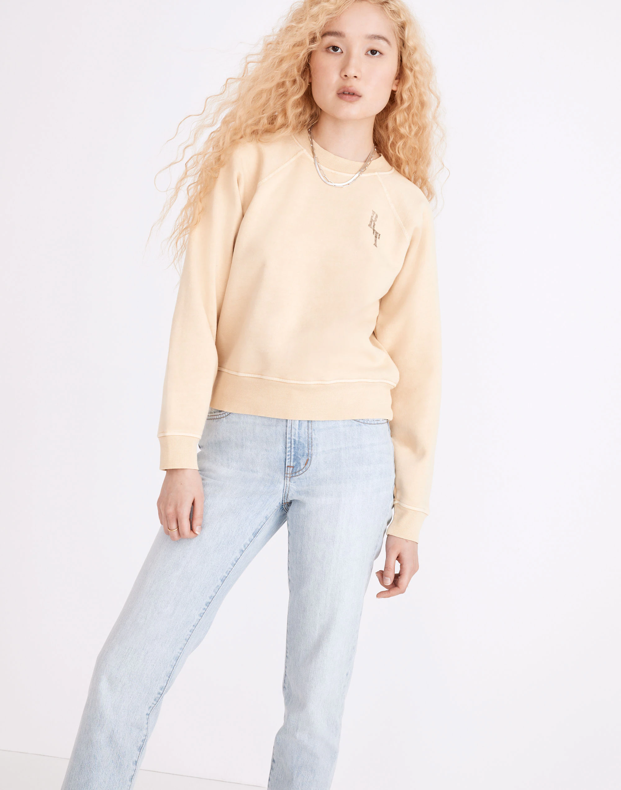 Limited edition and small batch, Rivet & Thread designs are future keepsakes crafted in LA from top-of-the-line fabrics. Specially washed for a broken-in look, this sweatshirt has raglan sleeves, a high ribbed neck and a wiiiild tiger on the back.
