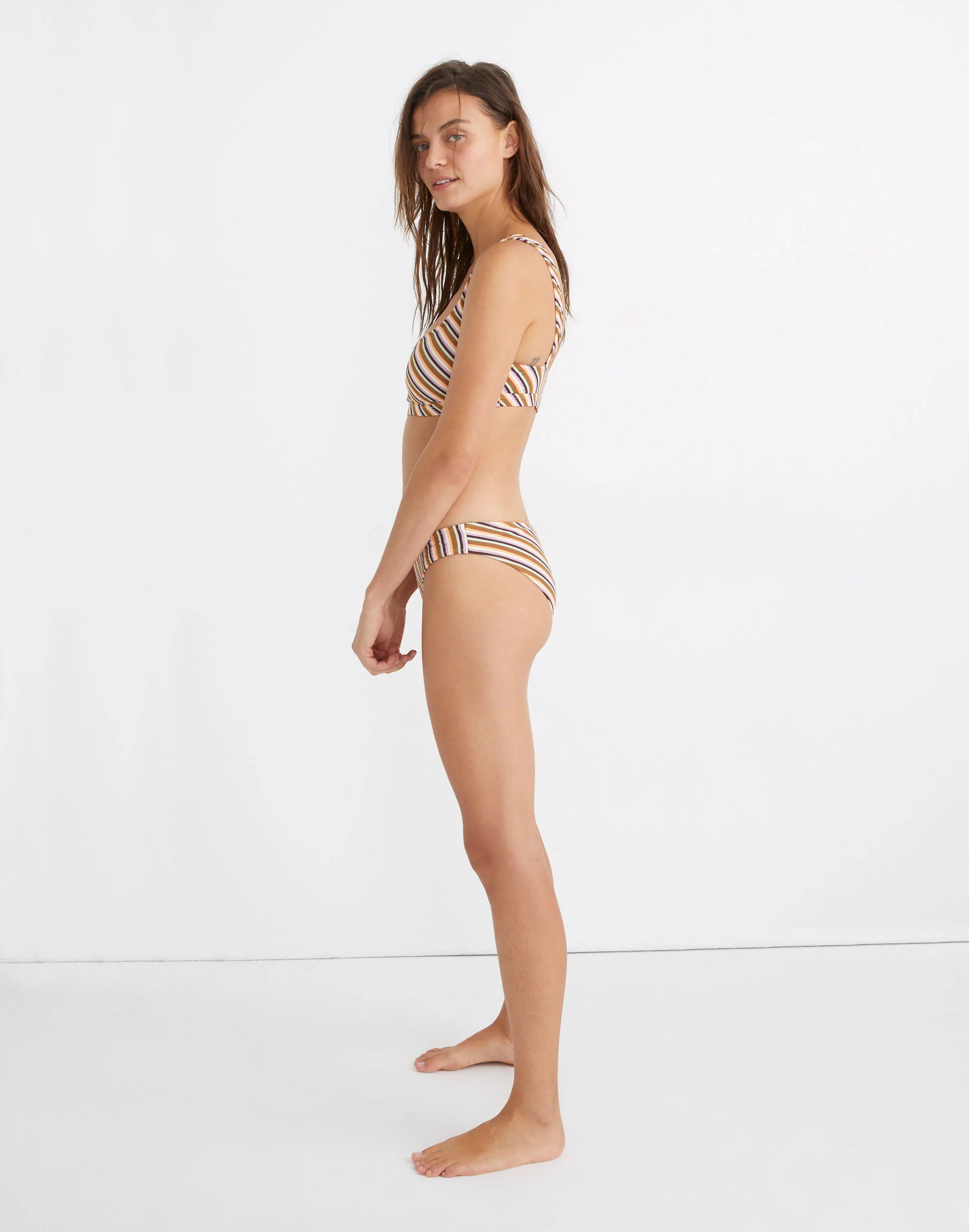 Our Madewell Second Wave swim collection has a built-in feel-good factor—the stripe-y ribbed fabric was made from recycled material. And the look-good factor is no joke either: Time traveling in from 1990, this bikini bottom has a curved waist that can be worn high or low. With sizes running from XXS to XXL, it’s an “everyone needs it” kinda deal.