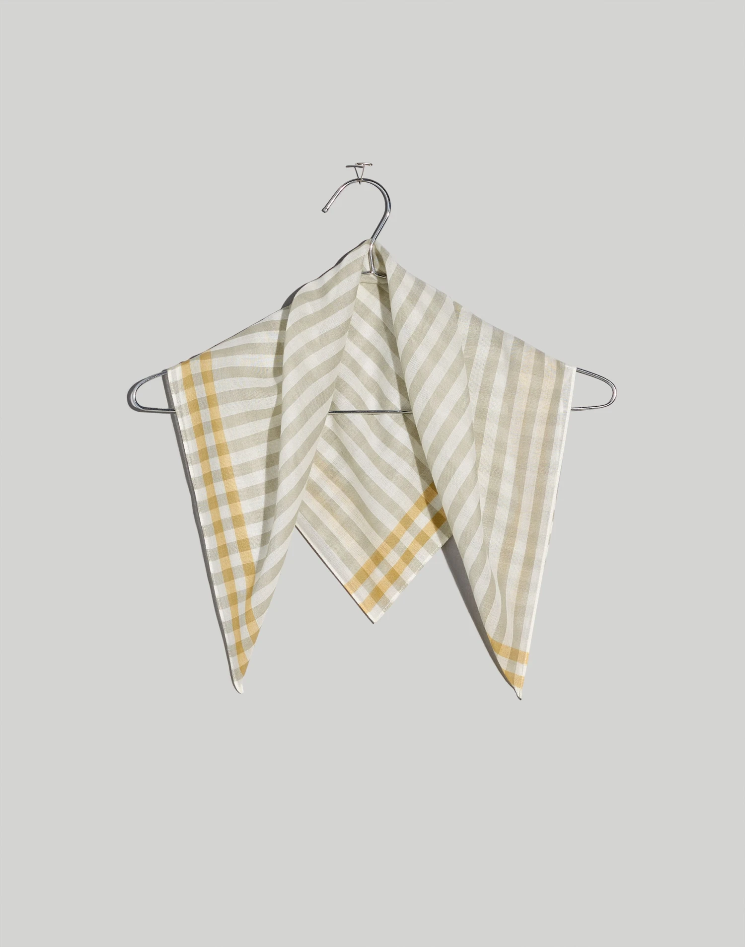 Made of cotton and linen, this striped poplin bandana can be worn as a handkerchief, tied onto a tote or wrapped around your wrist—the ways to rock it are endless.