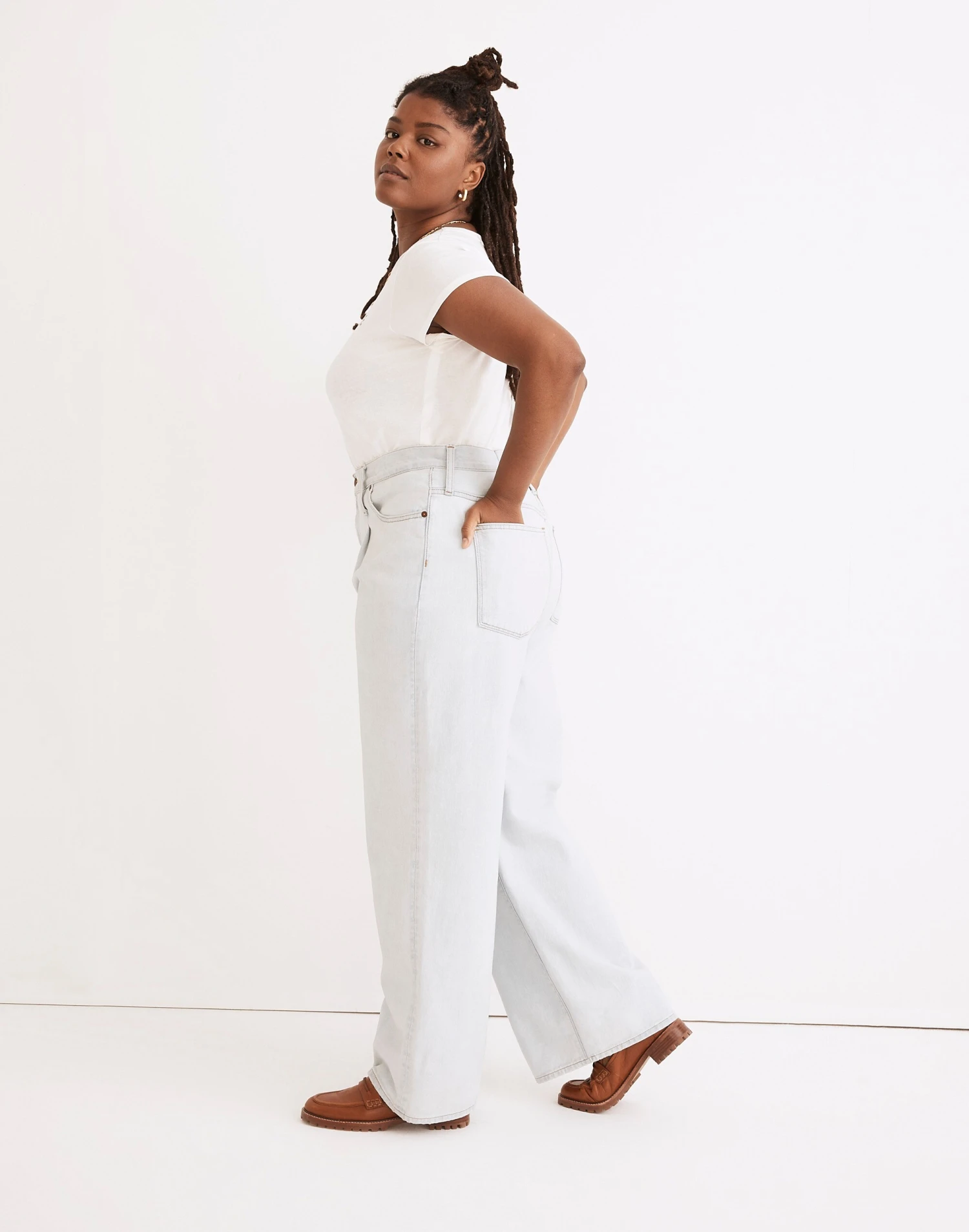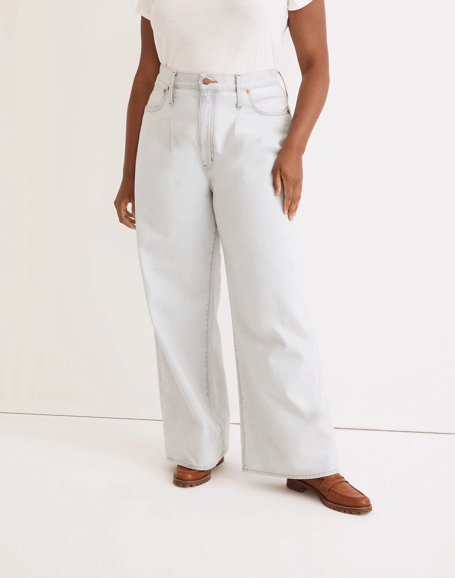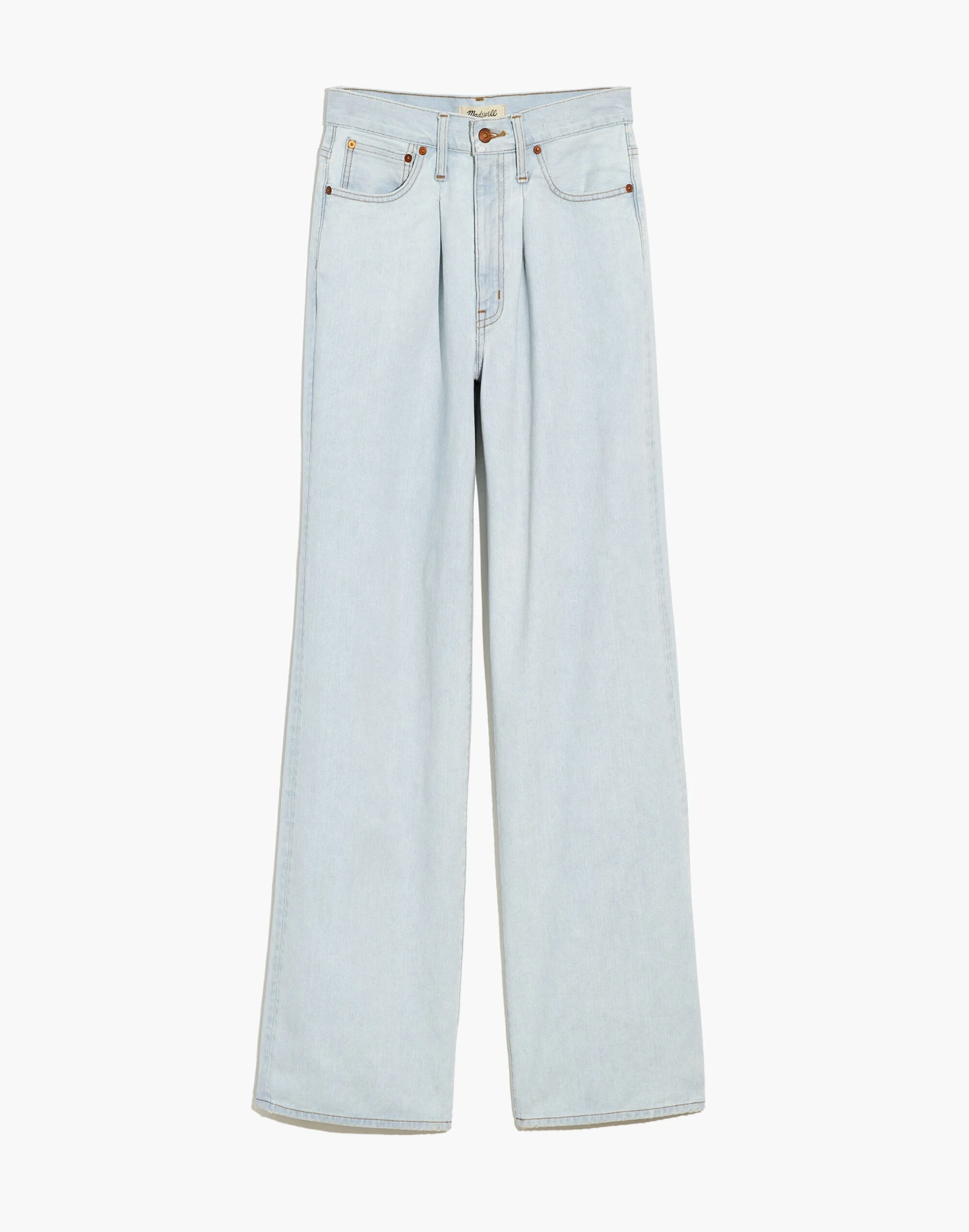The cut: Anchored at the high waist, these subtly pleated jeans are the widest wide-legs we’ve ever made (and a fresh take on a ’90s fit). The fabric: premium denim that combines the holds-you-in structure of rigid with a touch of stretch for day-one comfort.