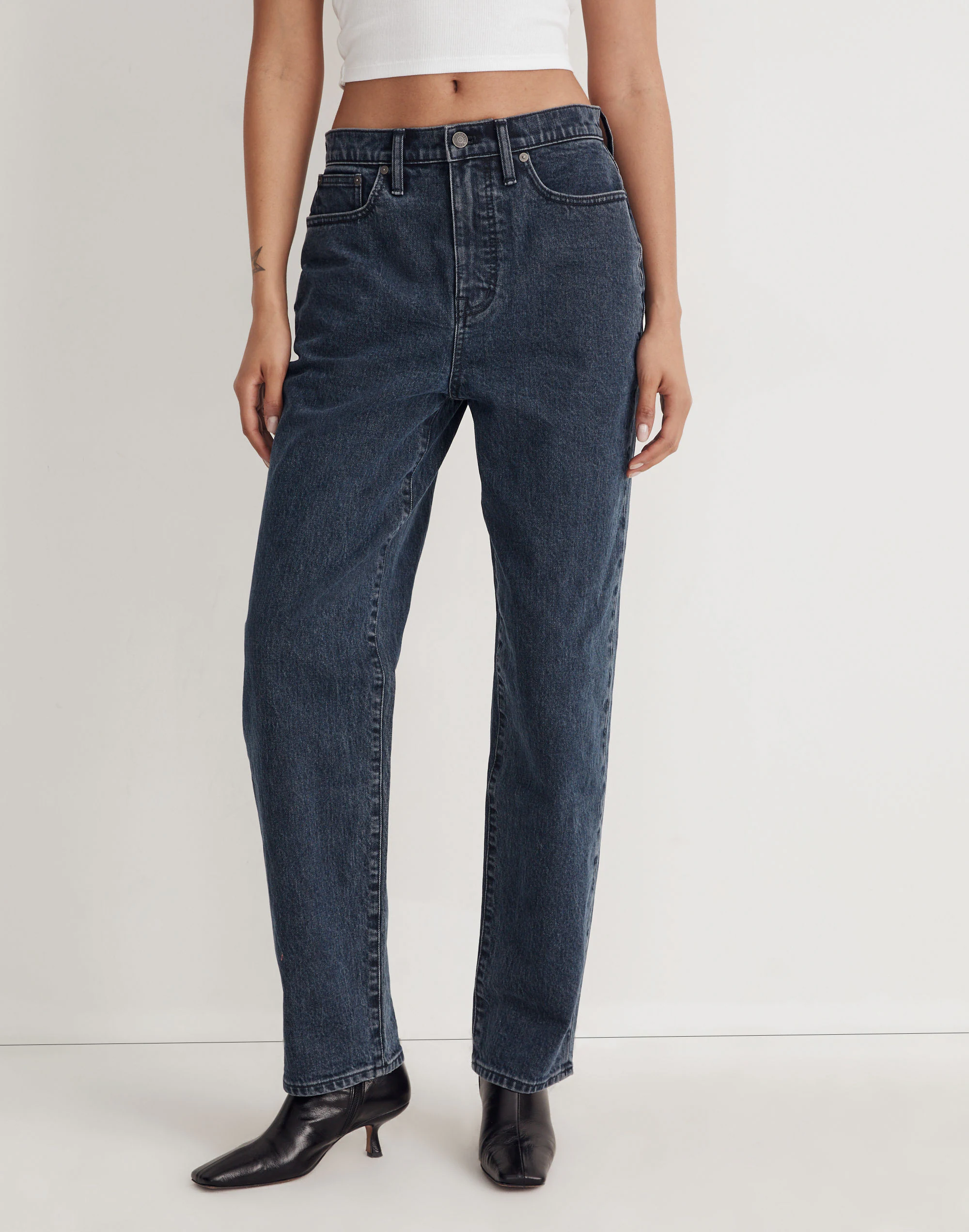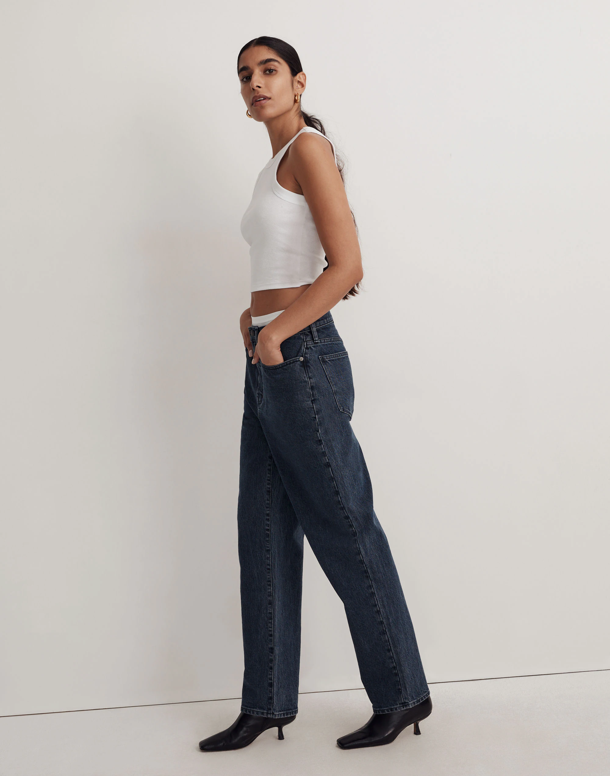 The cut: slouchy and slightly oversized, this boyfriend style was inspired by the kind of low-slung jeans you might steal from your dad’s closet (you know, the one place where it’s still pretty much the ’90s). The fabric: premium denim that combines the holds-you-in structure of rigid with a touch of stretch for day-one comfort.