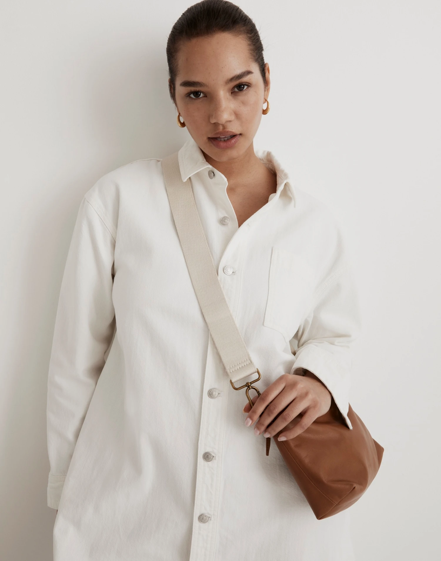 Made of supple leather, this ’90s-inspired two-in-one crossbody bag holds your daily phone-keys-wallet lineup. Complete with interior slide pockets, it has an adjustable webbed strap that’s completely removable thanks to the custom carabiner hardware.