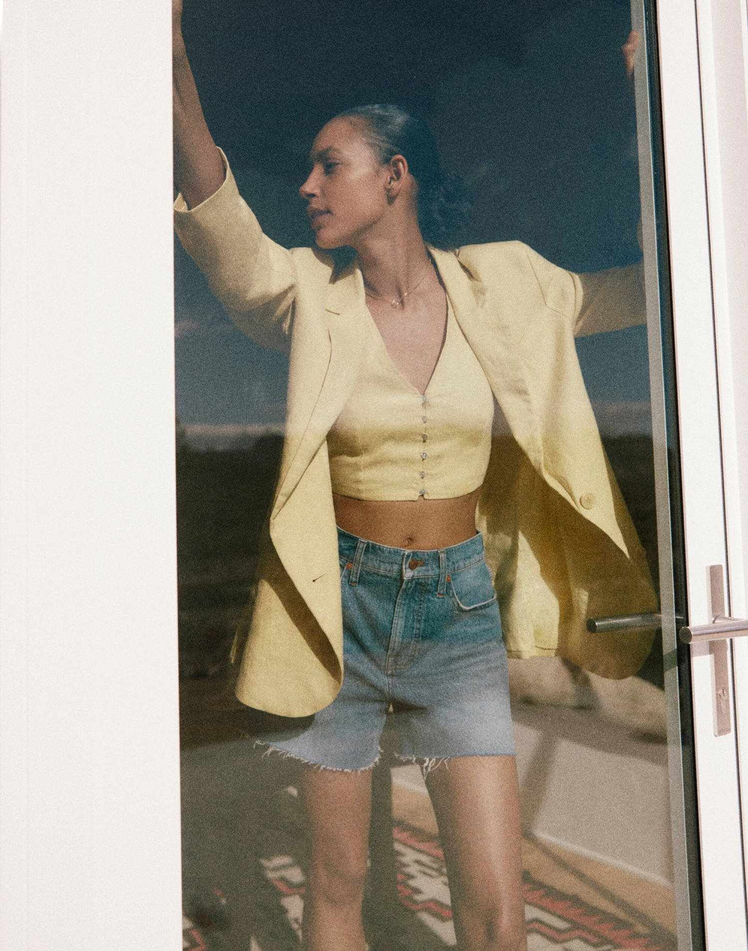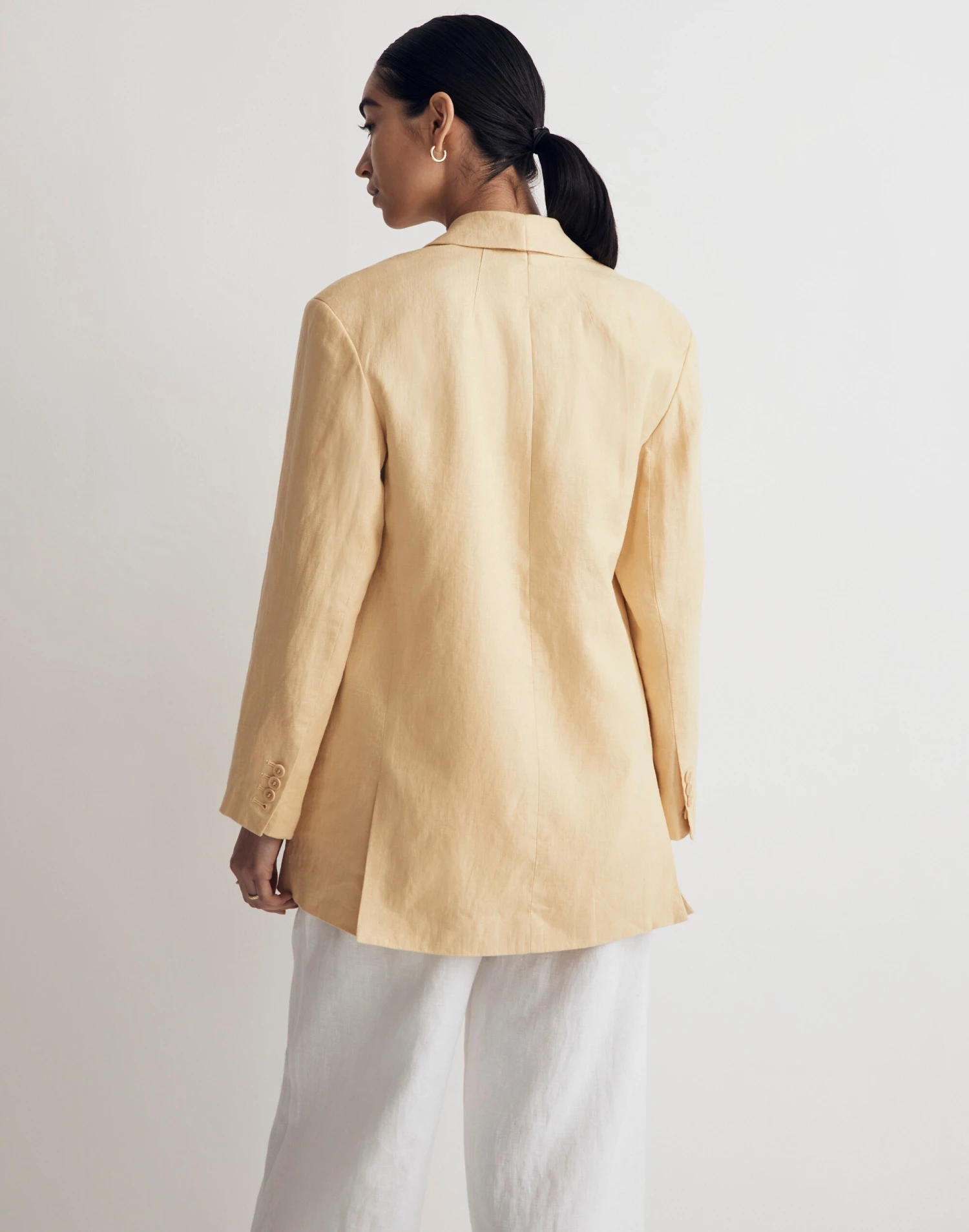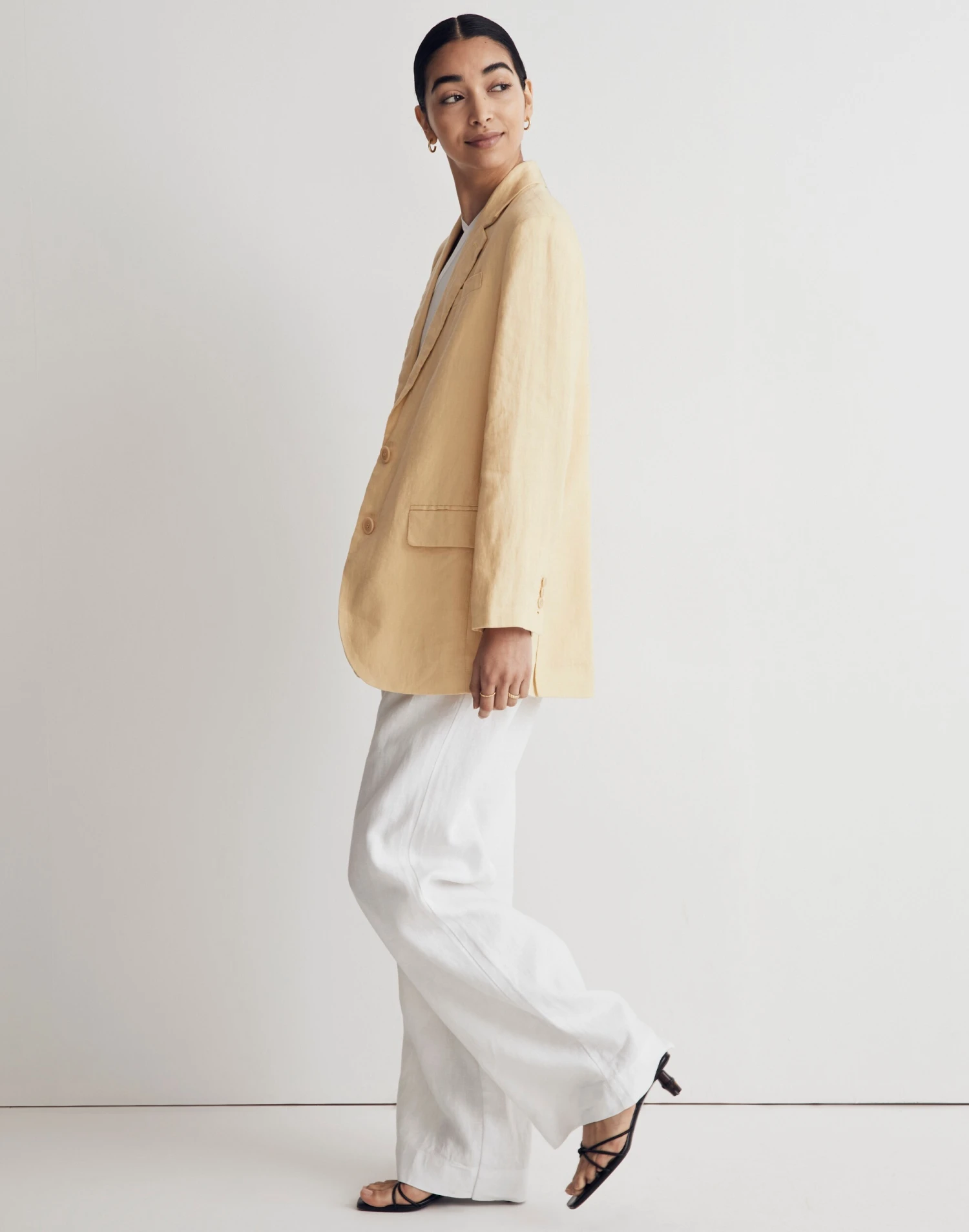 Our most oversized blazer yet features broad padded shoulders so you can really lean into the whole power dressing thing. Coming in 100 percent linen, this relaxed style has a welt pocket on the chest, plus flap pockets in front.