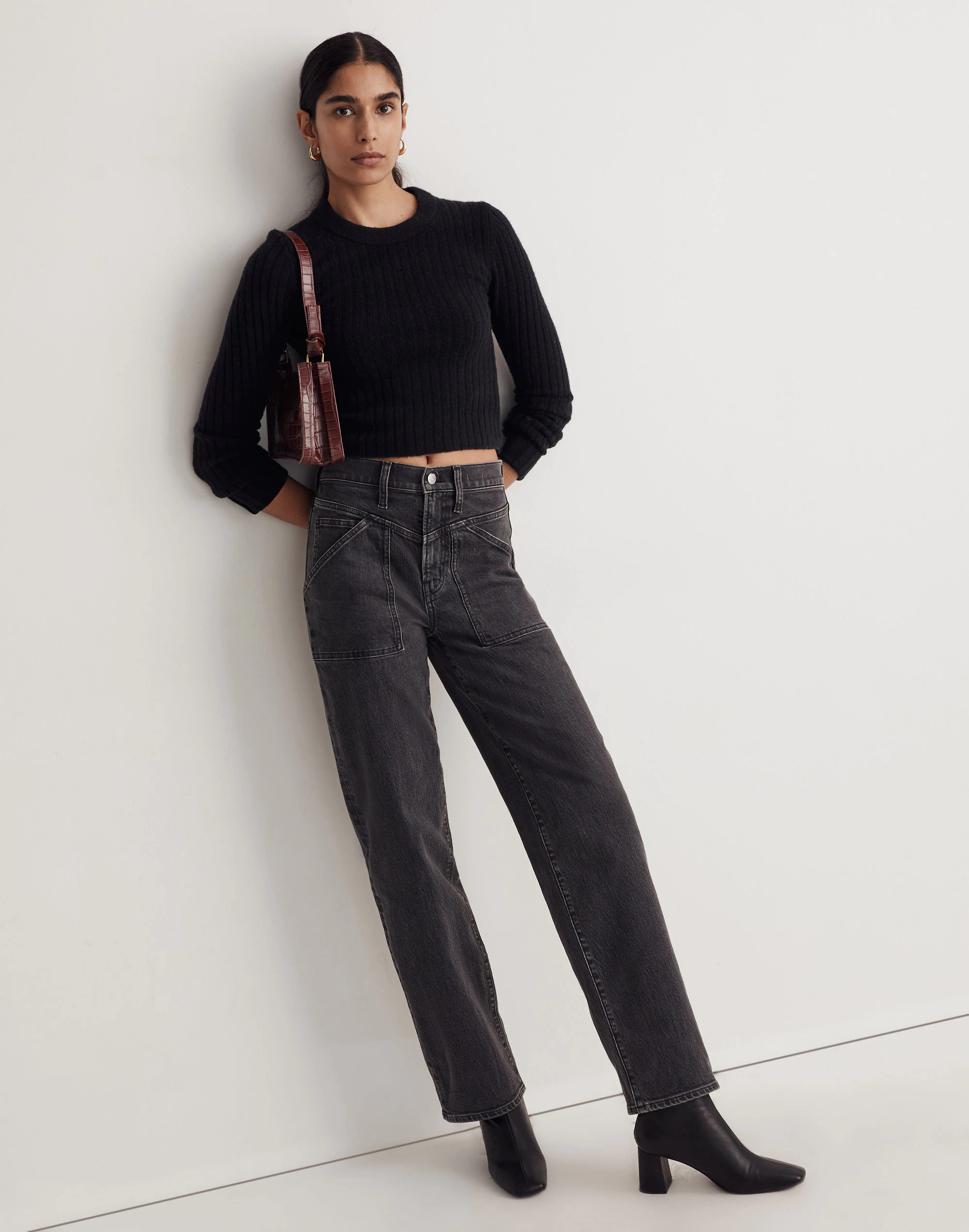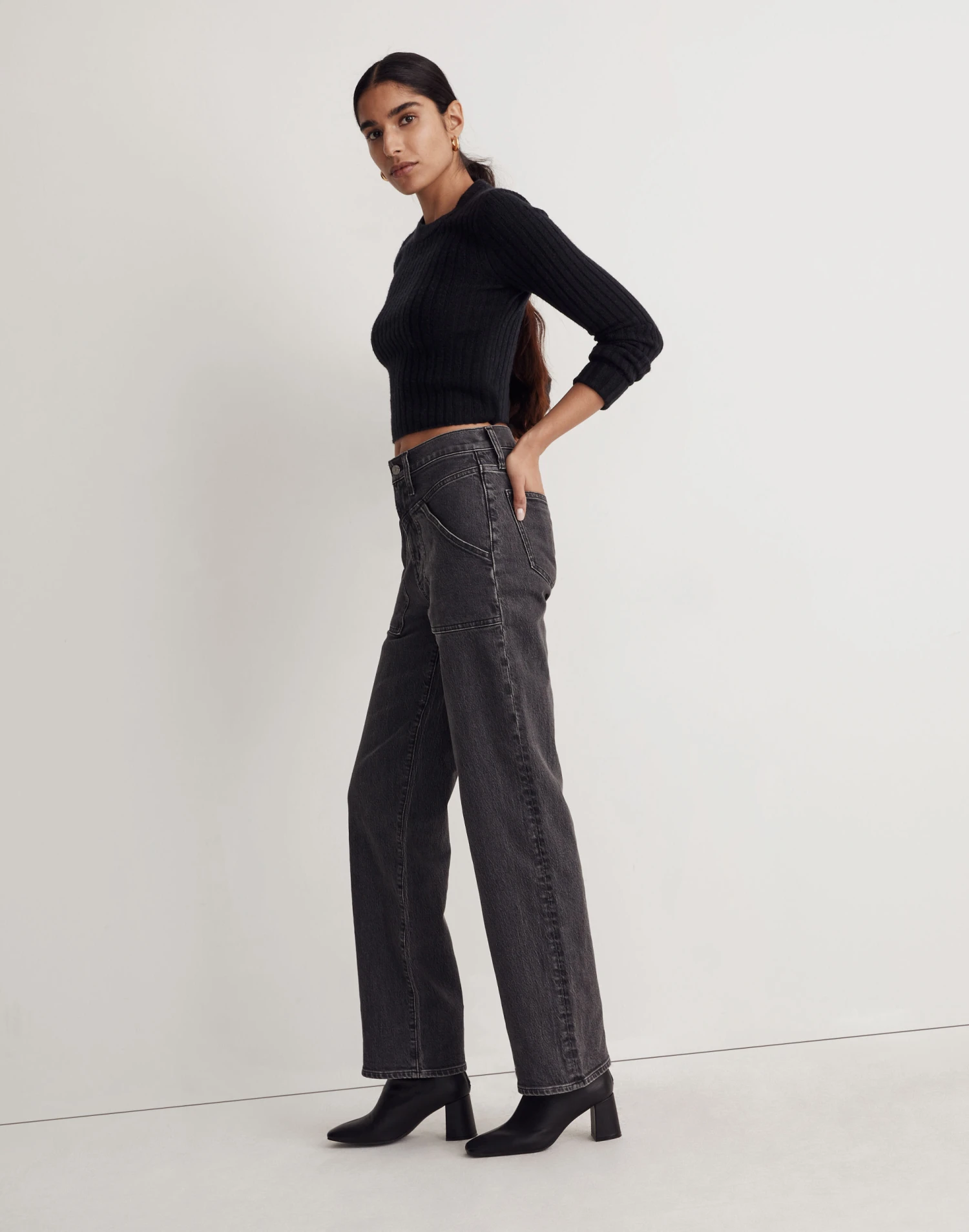 The cut: a recent addition to our Perfect Vintage fam, these patch-front pocket jeans combine the high fitted waist you love with slouchy wide legs. The fabric: vintage-y structured denim with a touch of stretch for a broken-in feel.