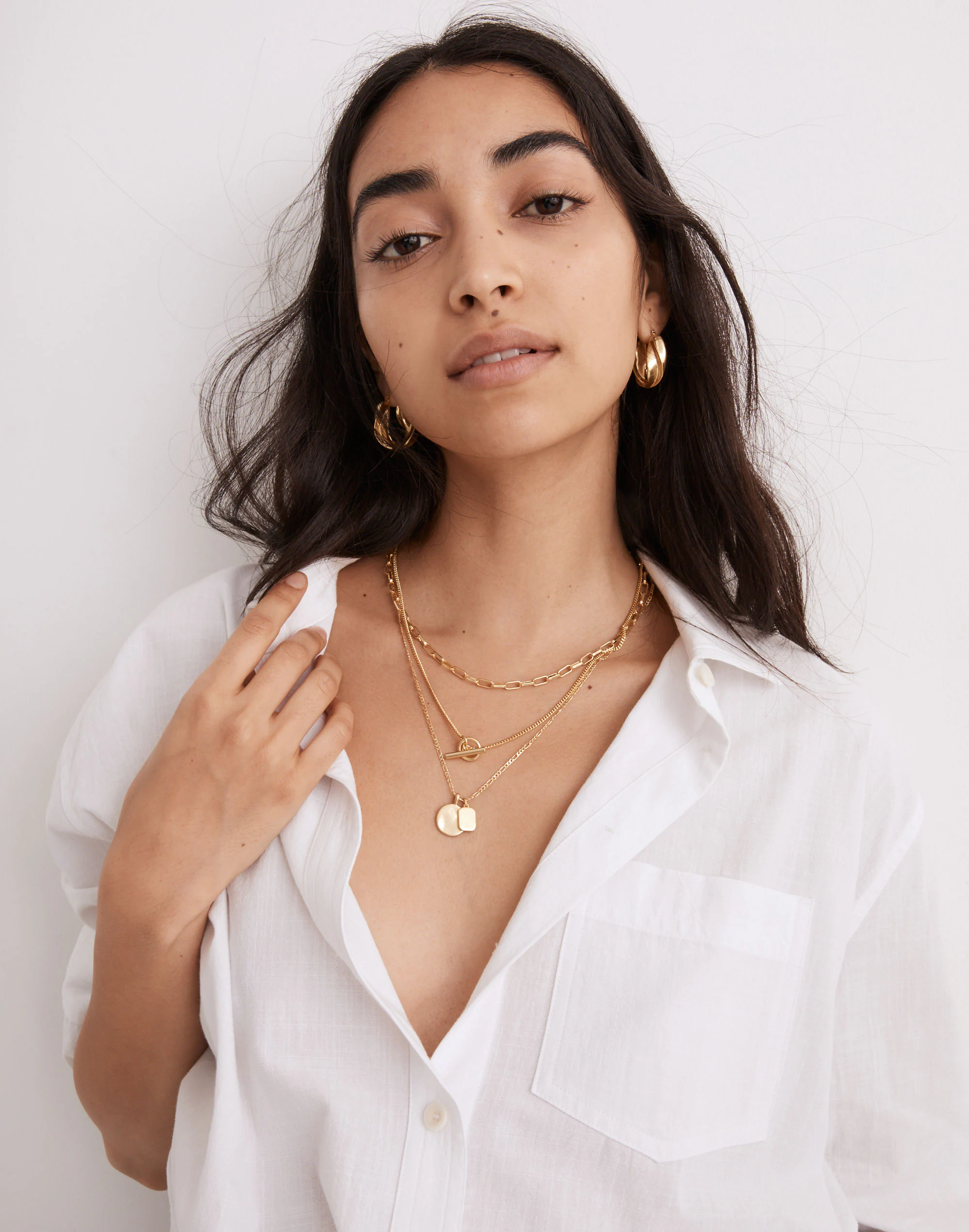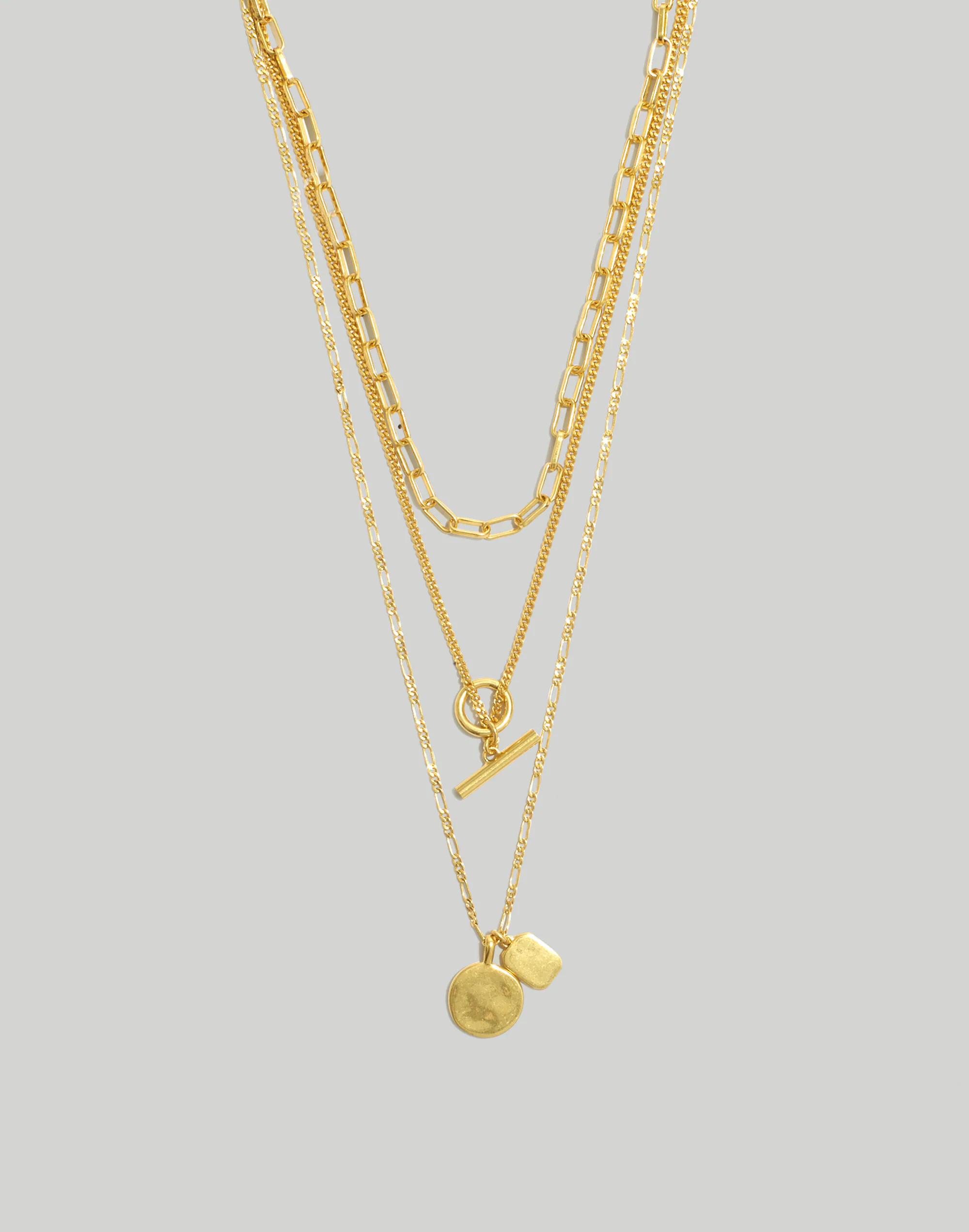 Three separate chains, a million possibilities. Necklaces guaranteed to make your sweats look expensive.