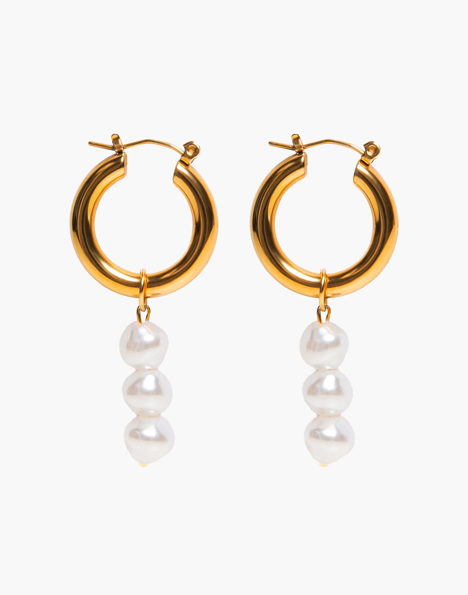 TSEATJEWELRY is all about glamorous, effortless jewelry that empowers its wearers. Fun and fresh these bee-utiful earrings feature a small gold hoop with dangly pearls.