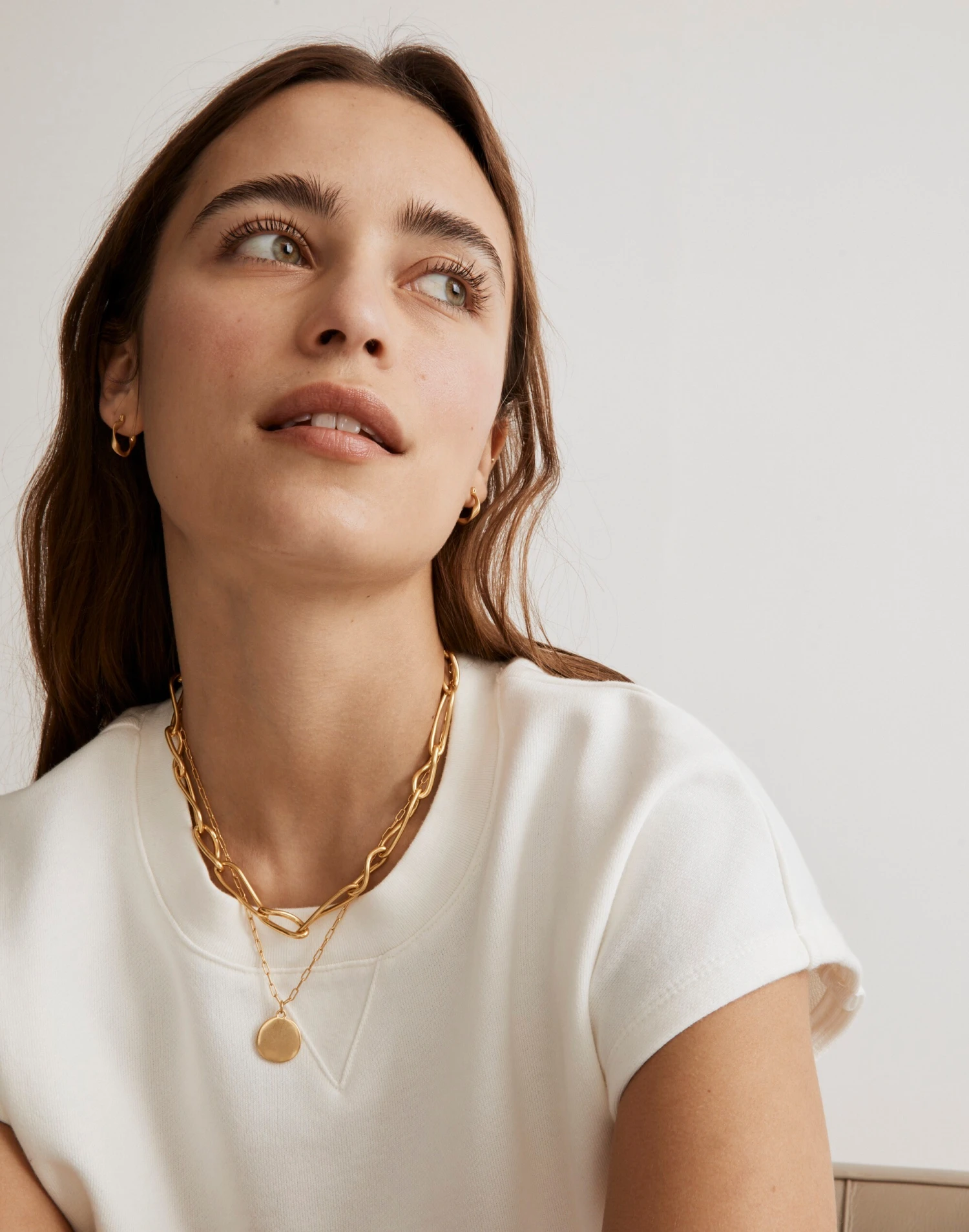 Cool worn together or apart, this two-piece necklace set features a choker-length chunky link chain and a simple circle pendant.