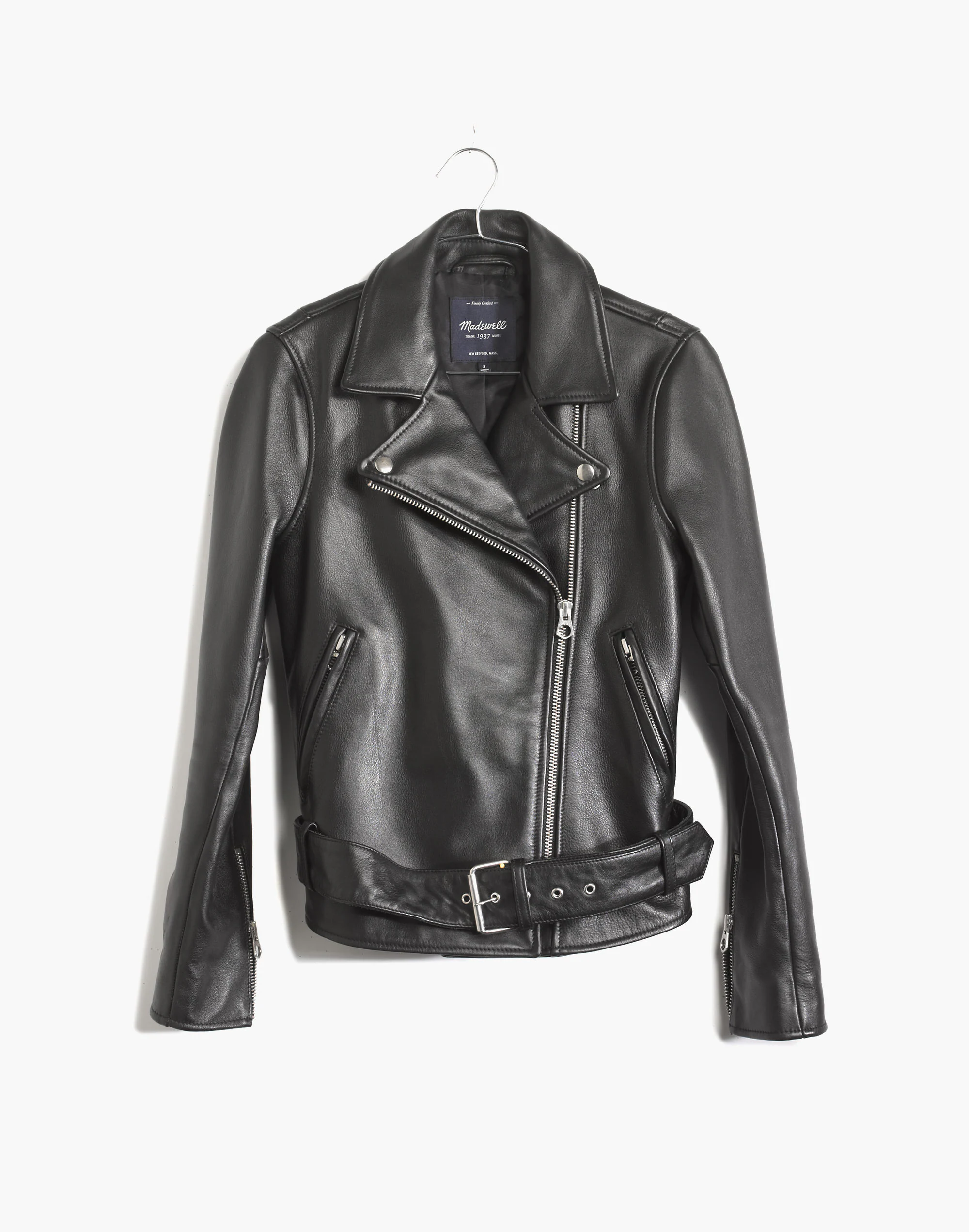 Inspired by old-school biker style (and some boyfriends past and present), our signature leather jacket combines buttery soft, pebbled leather with chunky silver hardware. Guaranteed to up the cool quotient of pretty much any outfit.