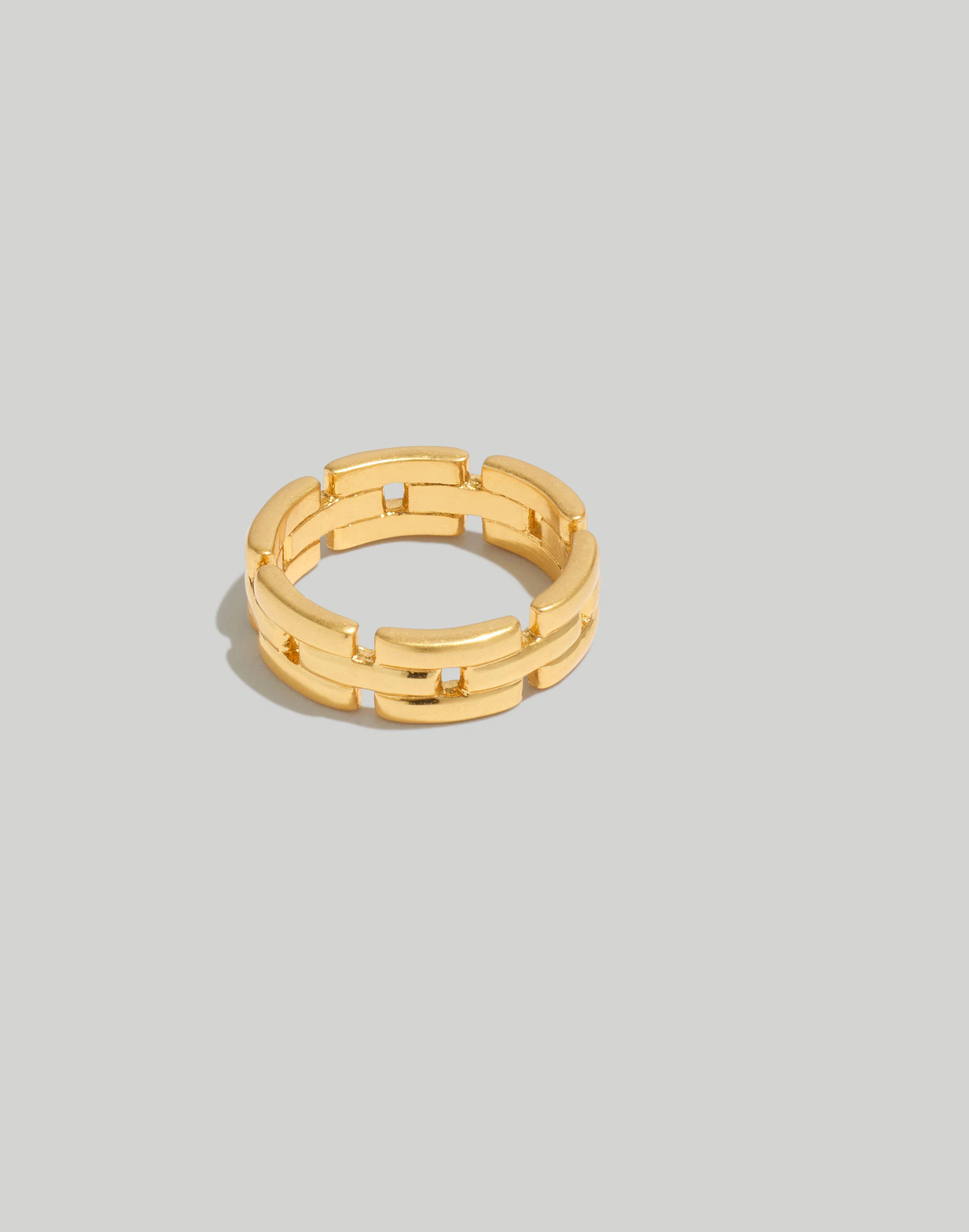 Like a chunky watch band made for your fingers, this gold-plated ring makes a bold statement (especially paired with the matching necklace).