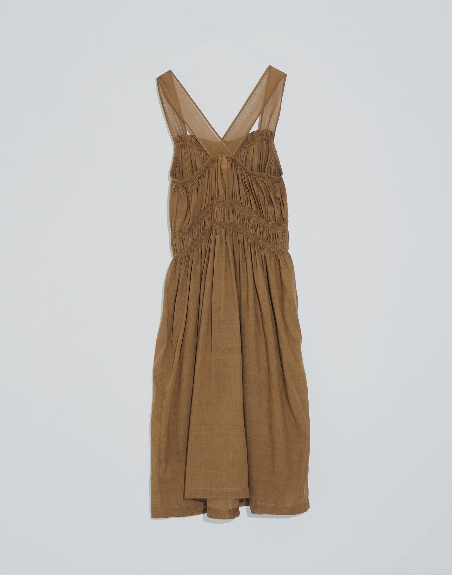 Founded in Ahmedabad, Gujarat, India by designer Shaila Khubchandani, World of Crow brings together contemporary style and traditional artisan-woven fabrics. Featuring WOC’s newest design, the Caramel Brown Midi Dress is a romantic garment with a flowy structure, an elastic design and functional side pockets.