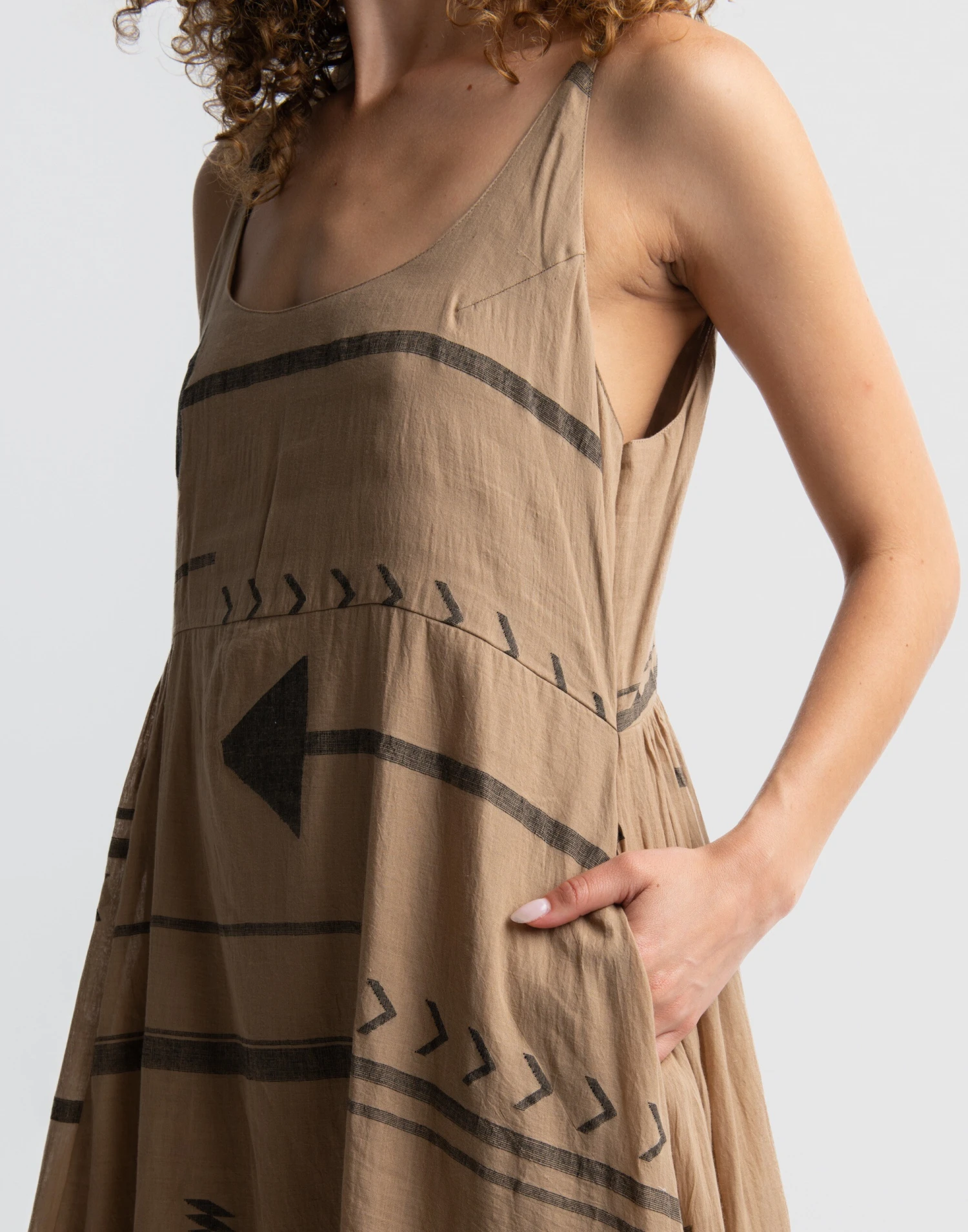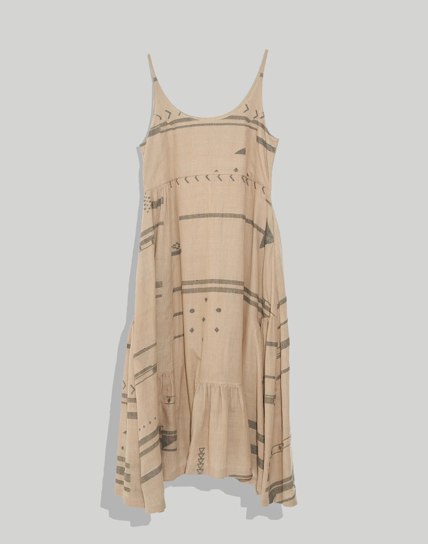 Founded in Ahmedabad, Gujarat, India by designer Shaila Khubchandani, World of Crow brings together contemporary style and traditional artisan-woven fabrics. A dress with pockets? SIGN US UP(!) The Nutmeg Slip Dress is a casual yet functional piece with a scoop neckline and an intricate design.