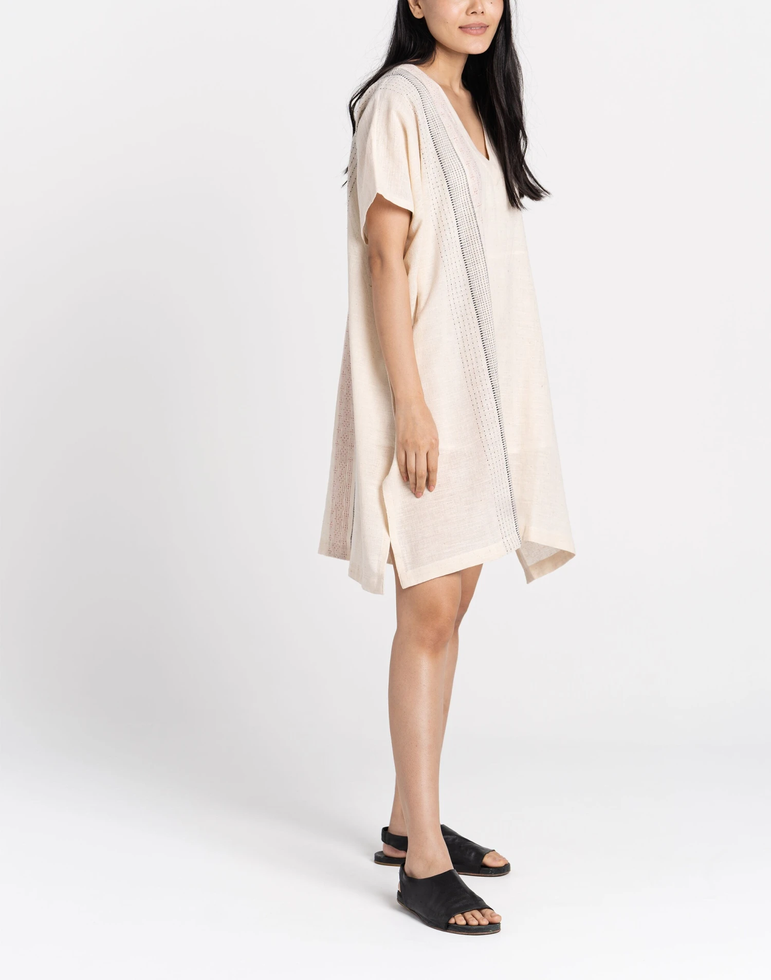 Founded in Ahmedabad, Gujarat, India by designer Shaila Khubchandani, World of Crow brings together contemporary style and traditional artisan-woven fabrics. Made of 100 percent organic cotton, this flowy mini dress is perfect for every hot day.