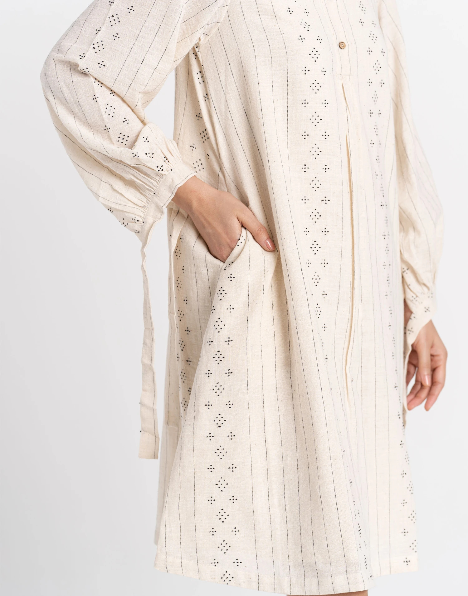 Founded in Ahmedabad, Gujarat, India by designer Shaila Khubchandani, World of Crow brings together contemporary style and traditional artisan-woven fabrics. Made of airy 100 percent organic cotton, this patterned dress has an easy relaxed shape.