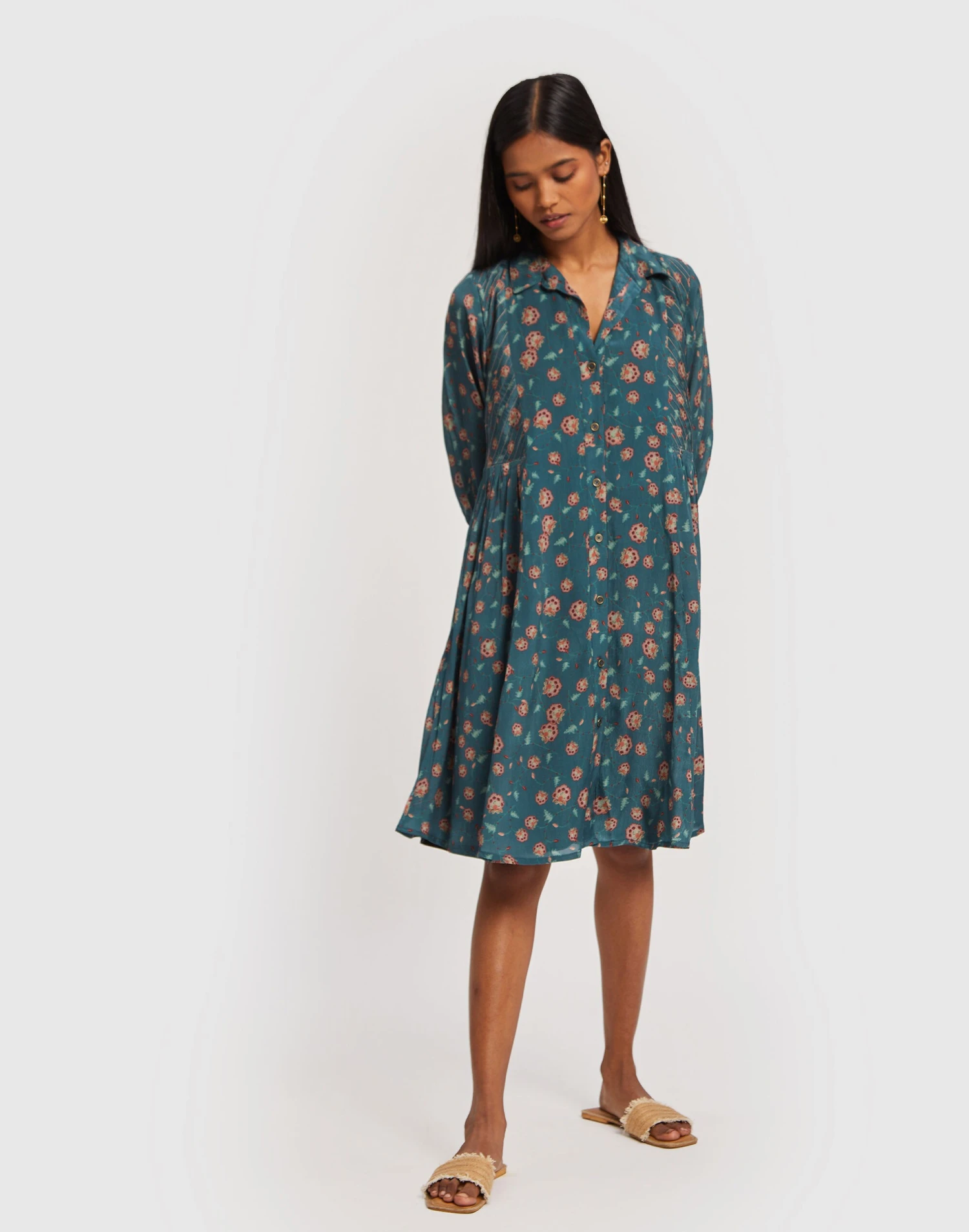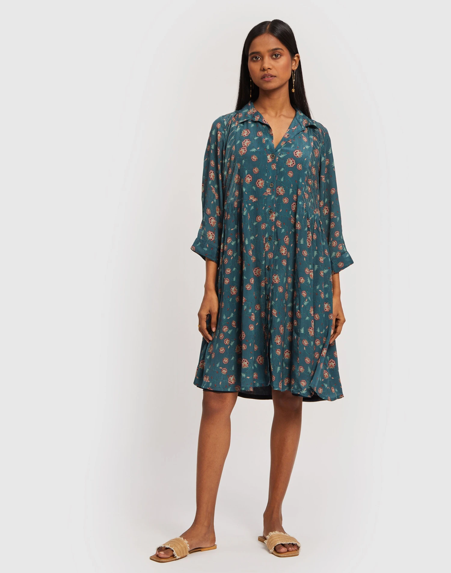 Pronounced “restore,” Reistor is devoted to sustainably produced clothing that can last a lifetime. A shirt dress with a difference, this Bemberg crepe version has pin tucks in a contrasting thread with buttons on the front and gathers on the style for the perfect fit.